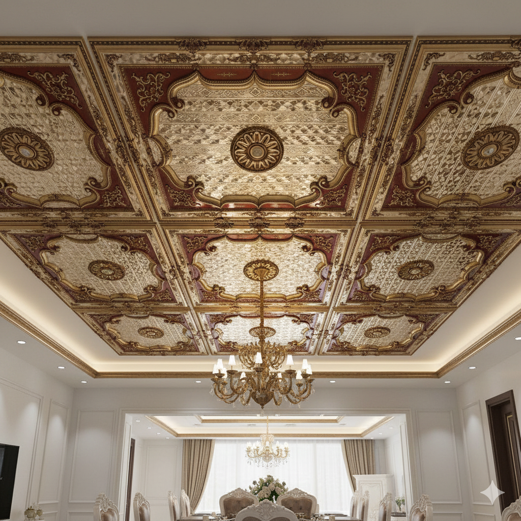 Erzielen Sie eine verblüffende Wirkung dank dieser stylischen Retro & Glamour Deckenpaneele. Eine hochwertige Dekorationsidee für Decken aller Art. Durch das geringe Gewicht kann diese lackierte Paneele an nahezu allen Decken angebracht werden.   Maße:   Länge 1,95 m Breite 1,38 m Höhe 0,08 m