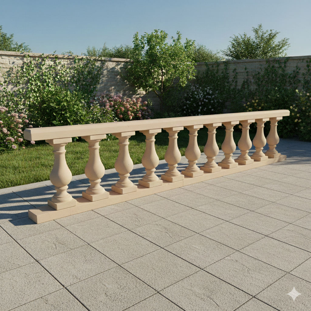 Stilvolle Balustrade hergestellt aus Massivholz und Beton. Die Balustrade kann in jeder beliebigen Länge und in Wunschfarbe hergestellt werden. Preis per Meter. Maße: Länge 2,00 m Breite 0,18 m Höhe 0,75 m