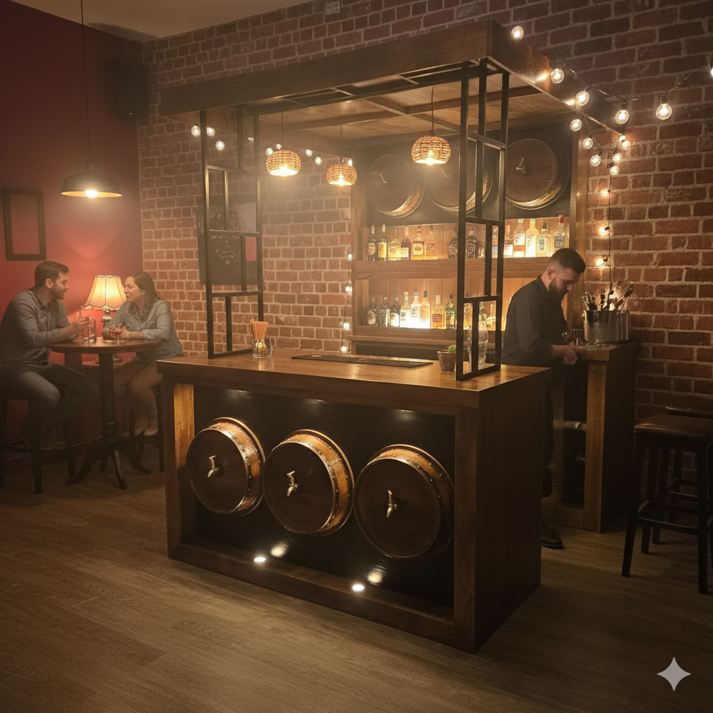 Bar da casa, bar da giardino, bar botte di vino in legno di mango 1,84 m