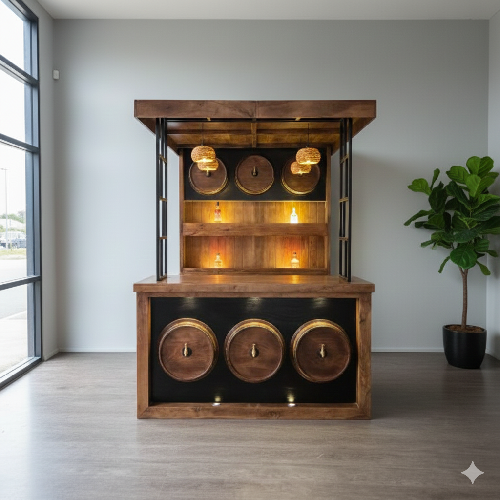 3.192,44€ Preis ohne SteuerQuesto straordinario bar è un capolavoro di artigianato. Il massiccio legno di mango con la sua calda venatura e gli robusti elementi metallici formano un’unità armoniosa. L’illuminazione integrata con lampade e faretti non solo mette in risalto le vostre bevande, ma crea anche un’atmosfera accogliente. Che sia come bar di casa nel soggiorno o come bar da giardino sulla terrazza – … Continua a leggere