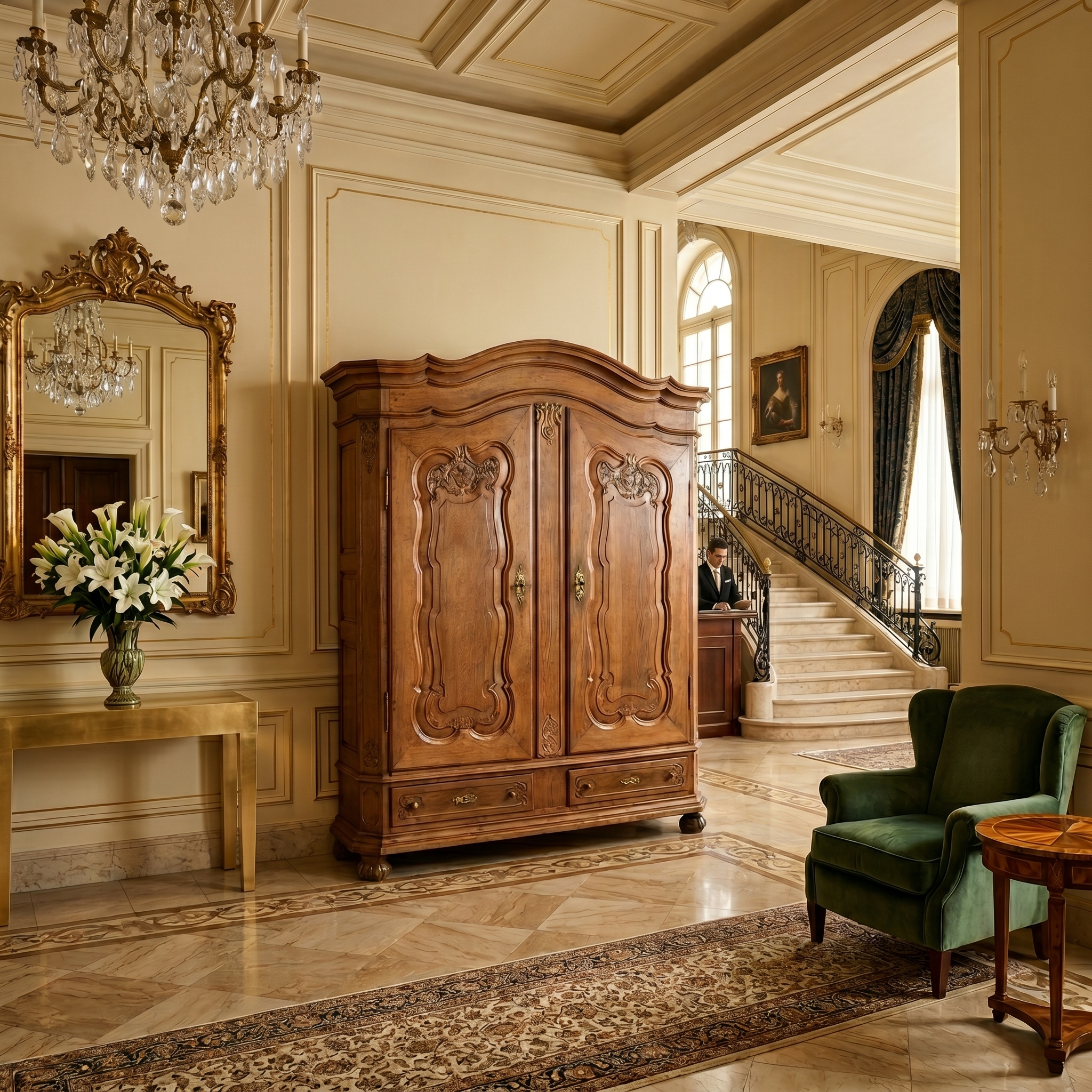 1.676,47€ Preis ohne SteuerRestaurierter Bergischer Barock Kleiderschrank aus massiv Eiche (gewachst) von ca. 1780. Der Schrank befindet sich in einem sehr guten Zustand und weist nur minimale Gebrauchsspuren auf. Zerlegbar (8-teilig). 4 Regalboden 2 Schubladen massiv Eiche zerlegbar Barock ca. 1780 Maße: Breite 1,80 m Höhe 2,00 m Tiefe 0,60 m