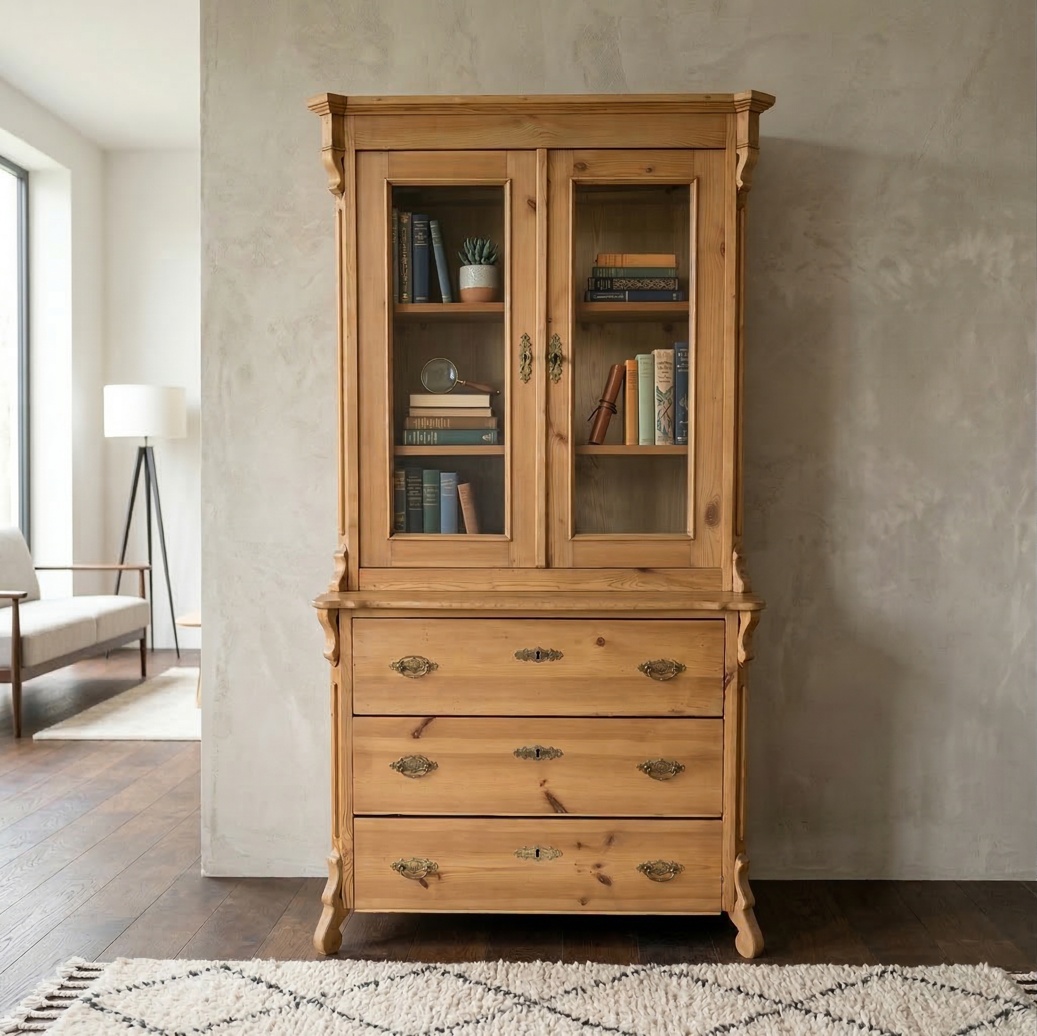Restaurierter Louis Philippe Buffetschrank aus massiv Kiefer (gewachst) von ca. 1870. Der Schrank befindet sich in einem guten Zustand und weist nur leichte Gebrauchsspuren auf. Zerlegbar (2-teilig).   • 3 Schubladen • 3 Regalboden • Massivholz • zerlegbar • Louis Philippe ca. 1870   Maße:   Breite 1,02 m Höhe 1,94 m Tiefe 0,42 m … Weiterlesen