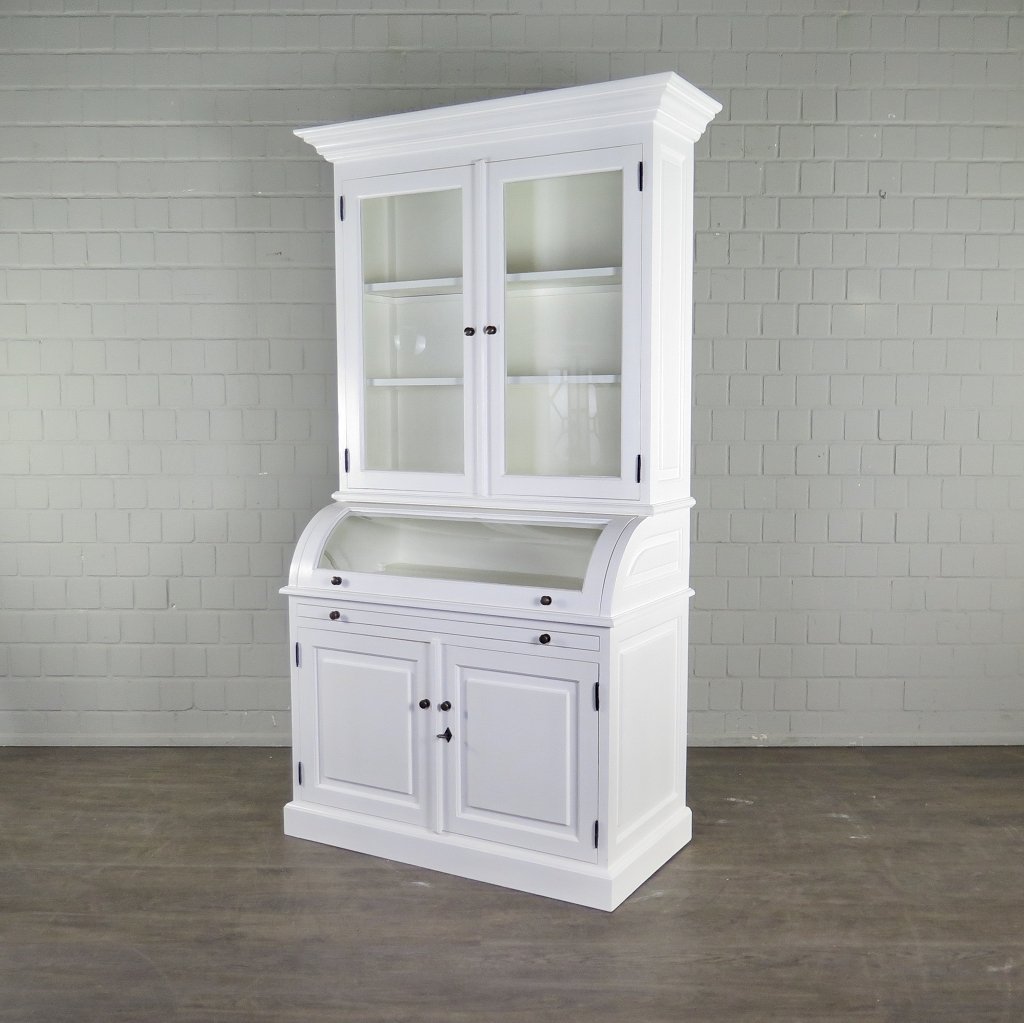 Buffetschrank Vitrine 1,22 m Teakholz Weiß
