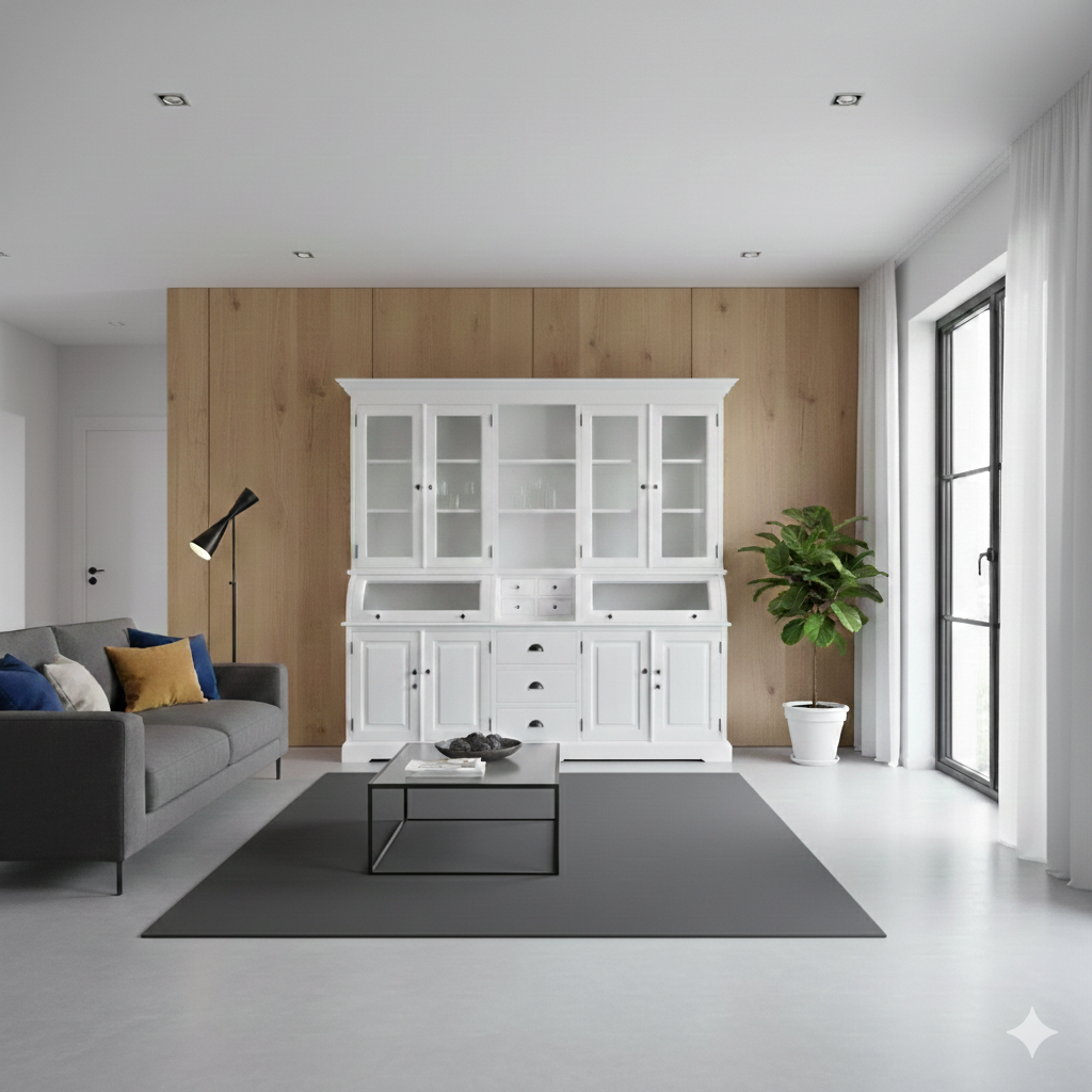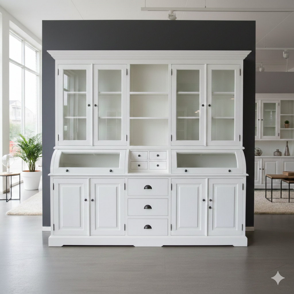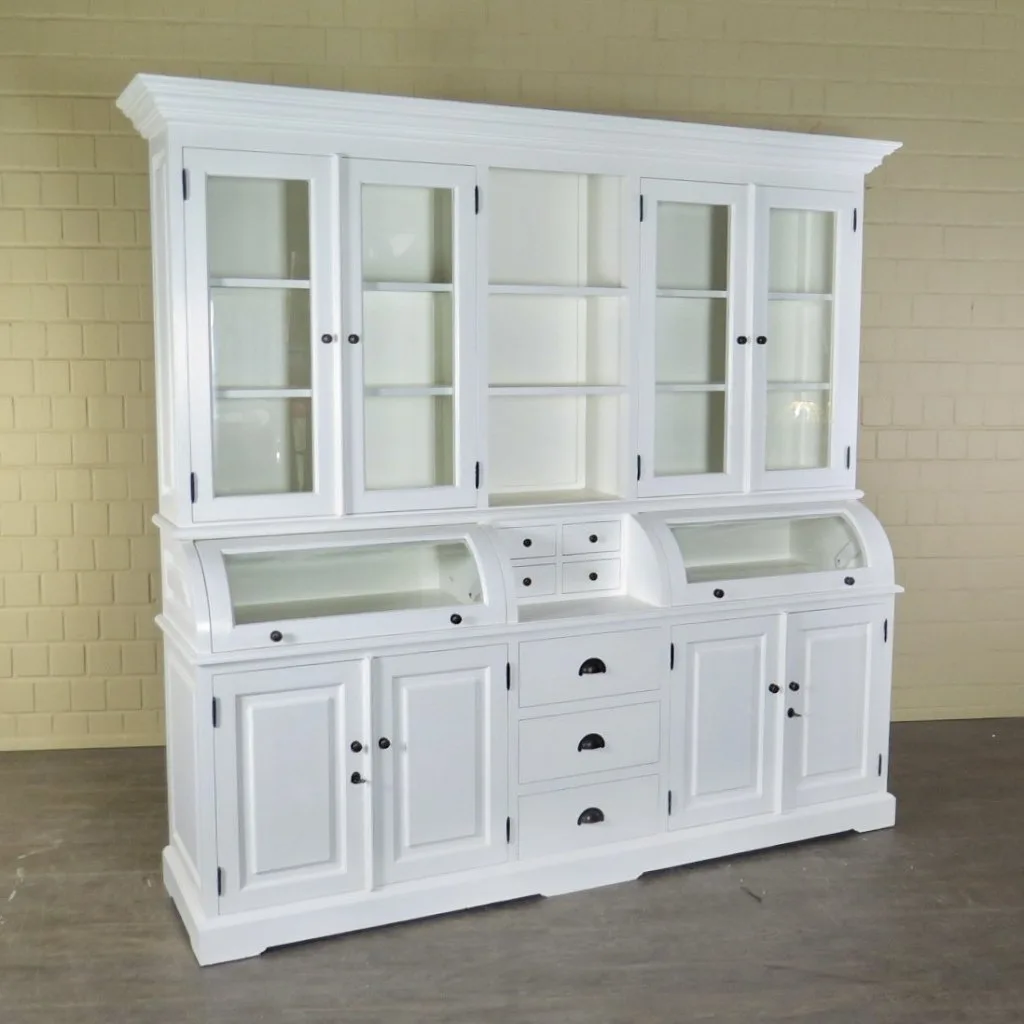 Buffetschrank Vitrine 2,27 m Teakholz Weiß