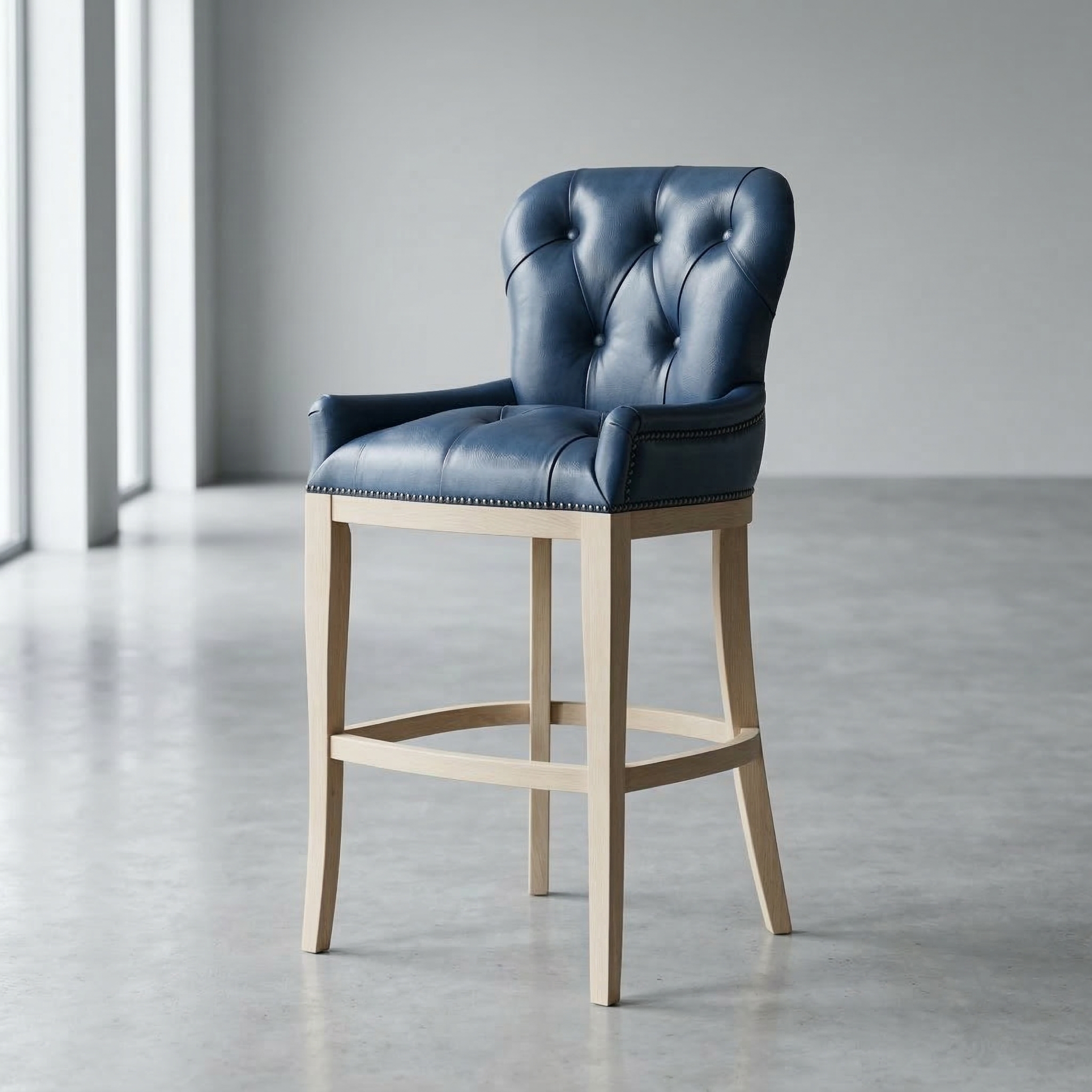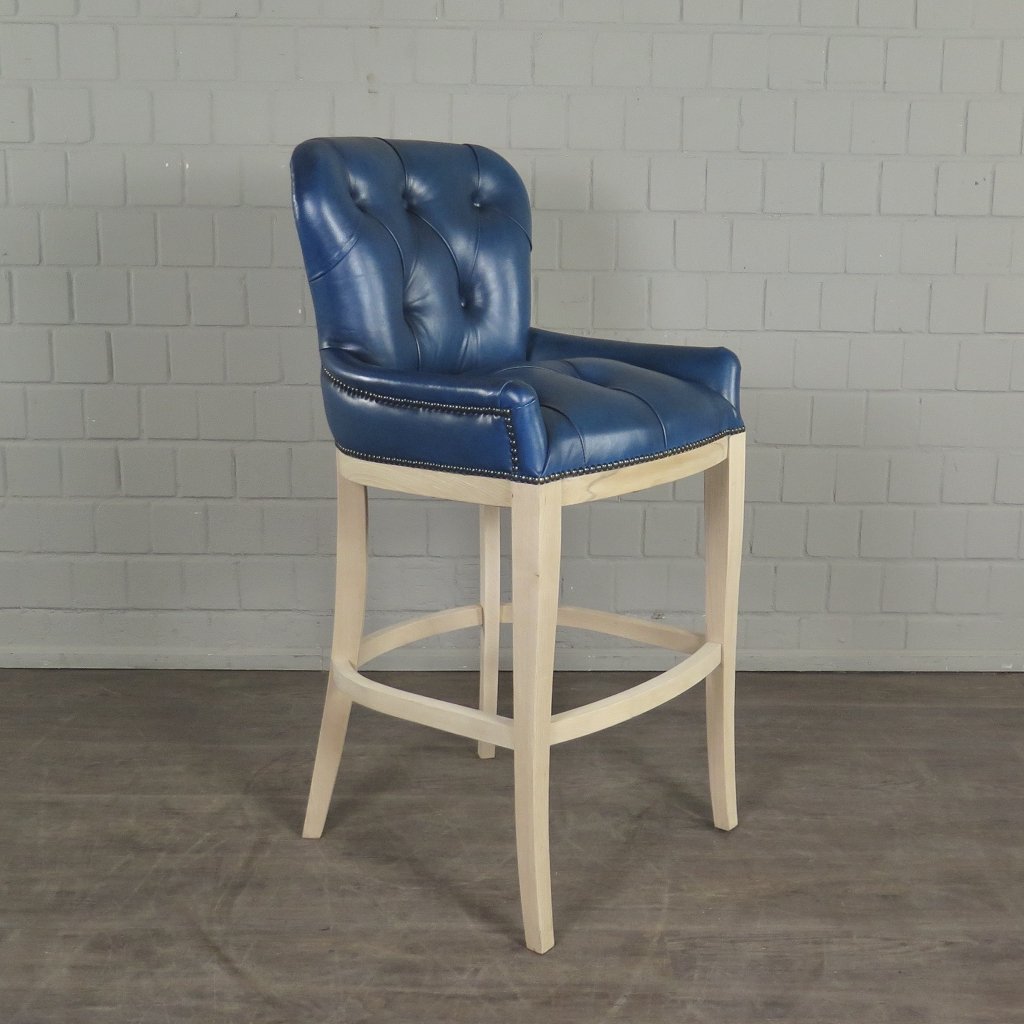 Hochwertiger Barhocker bezogen mit echtem Rindsleder nach Chesterfield Art. Sitzkomfort für höchste Ansprüche.