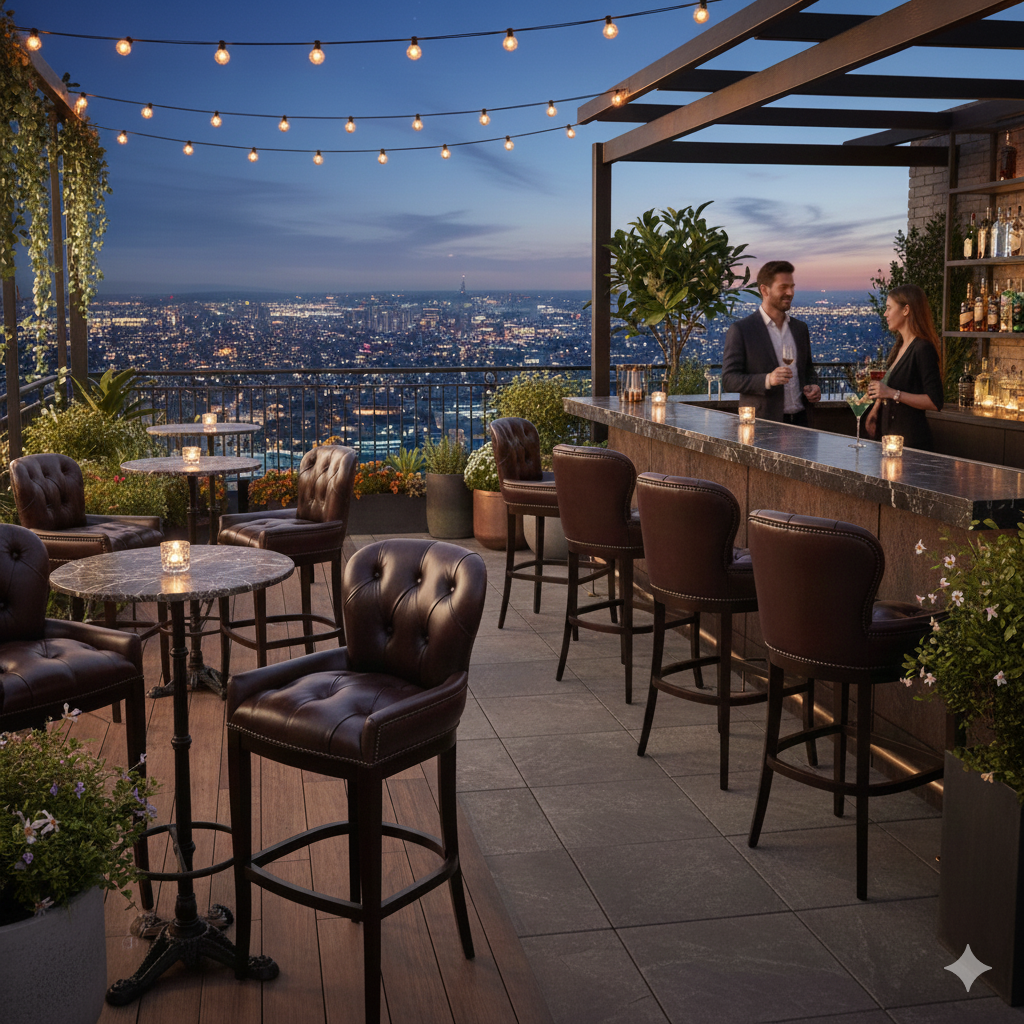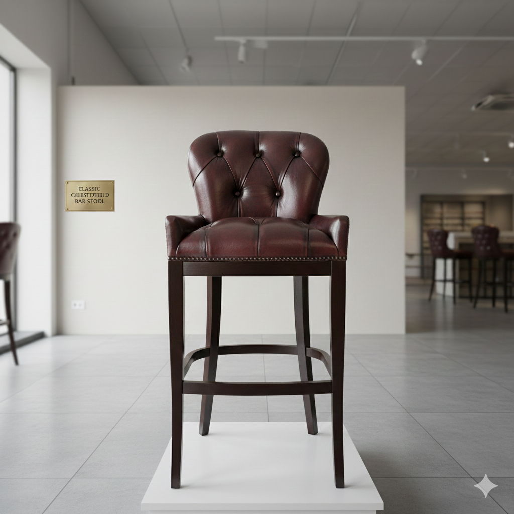 Hochwertiger Barhocker bezogen mit echtem Rindsleder nach Chesterfield Art. Sitzkomfort für höchste Ansprüche. Stückpreis.