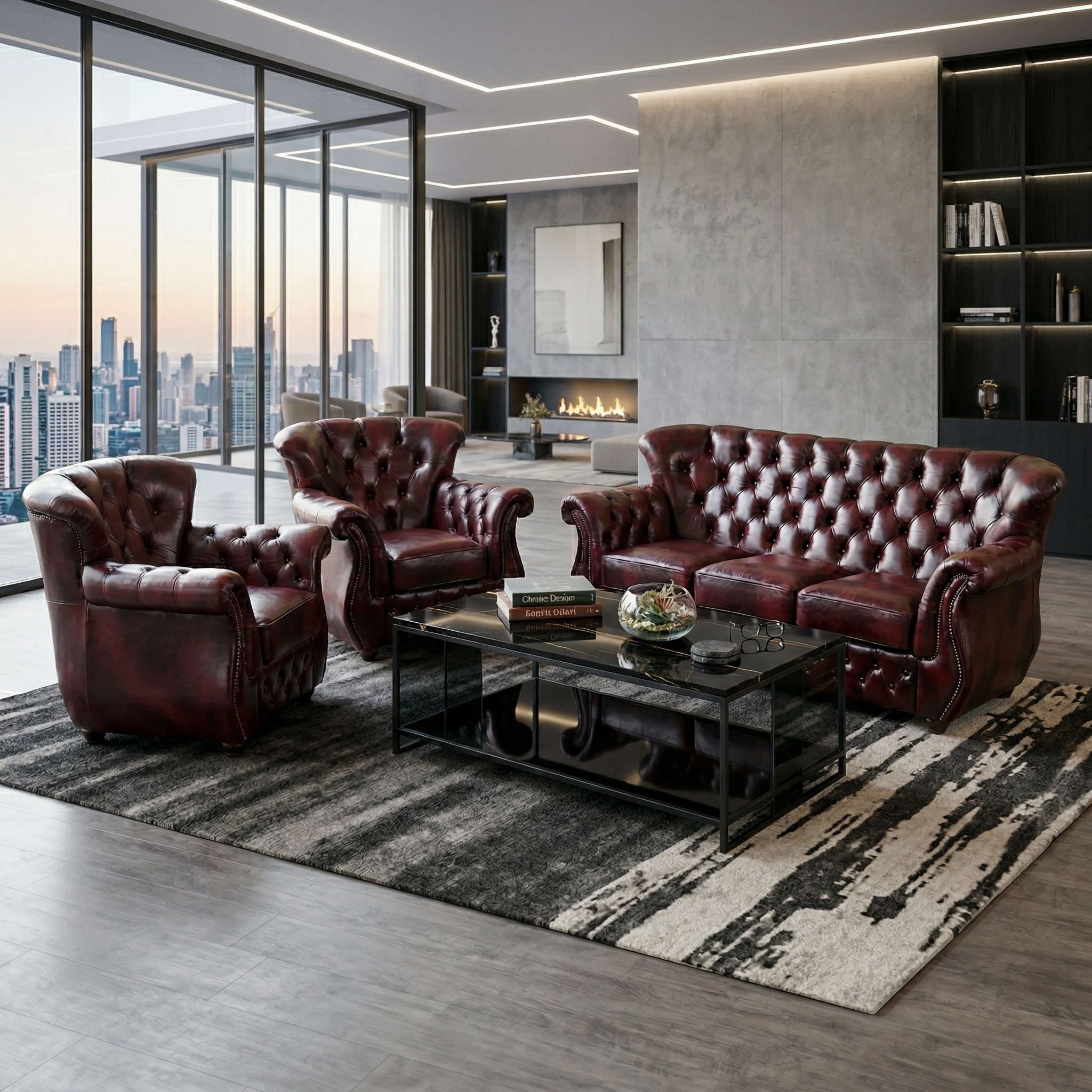 Chesterfield Couchgarnitur Rot-Schwarz 3-1-1 Leder