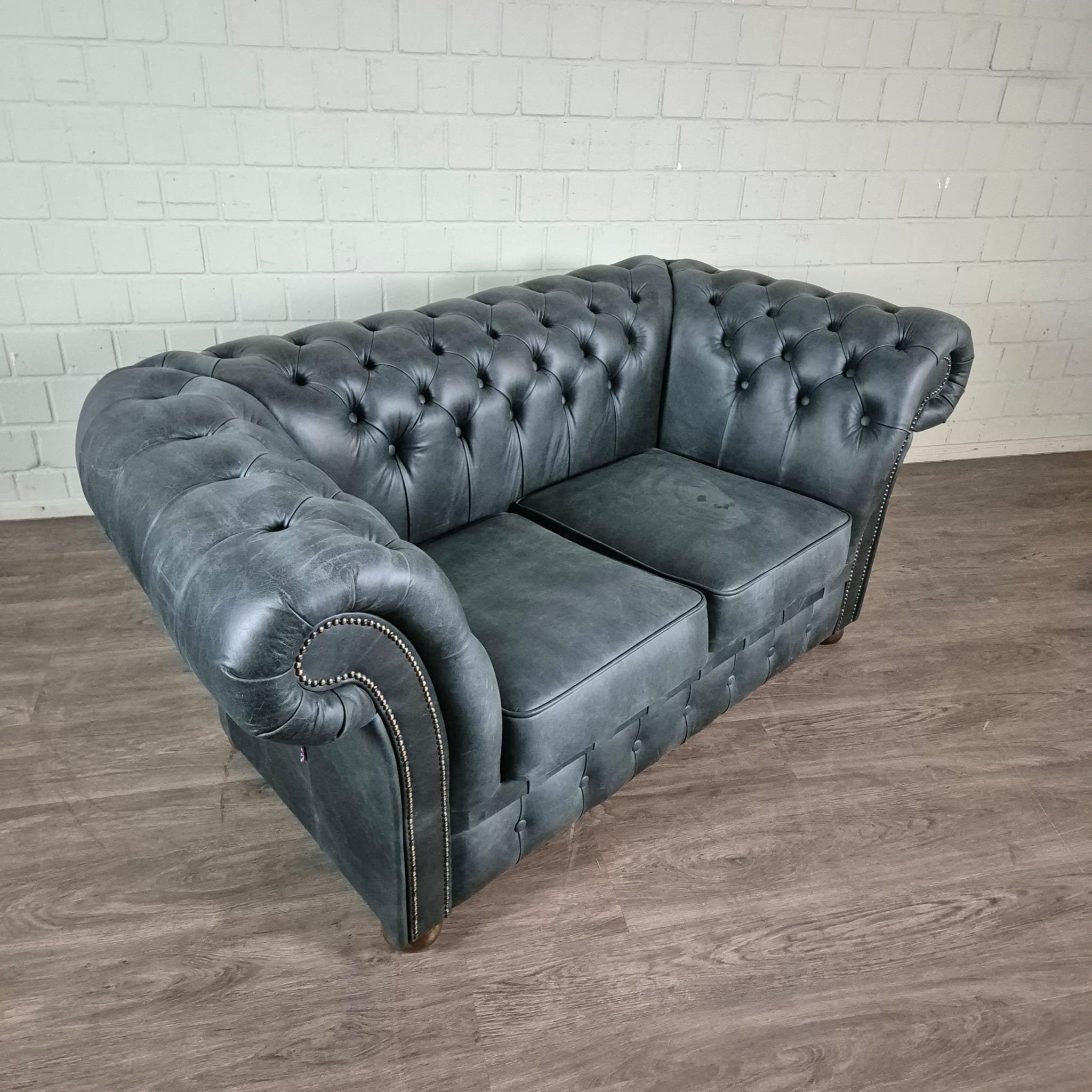 Stilvolle 2-Sitzer Chesterfield Couch aus echtem Leder.    Maße:   Länge 1,80 m Breite 0,88 m Höhe 0,77 m Sitzhöhe 0,44 m Sitztiefe 0,55 m