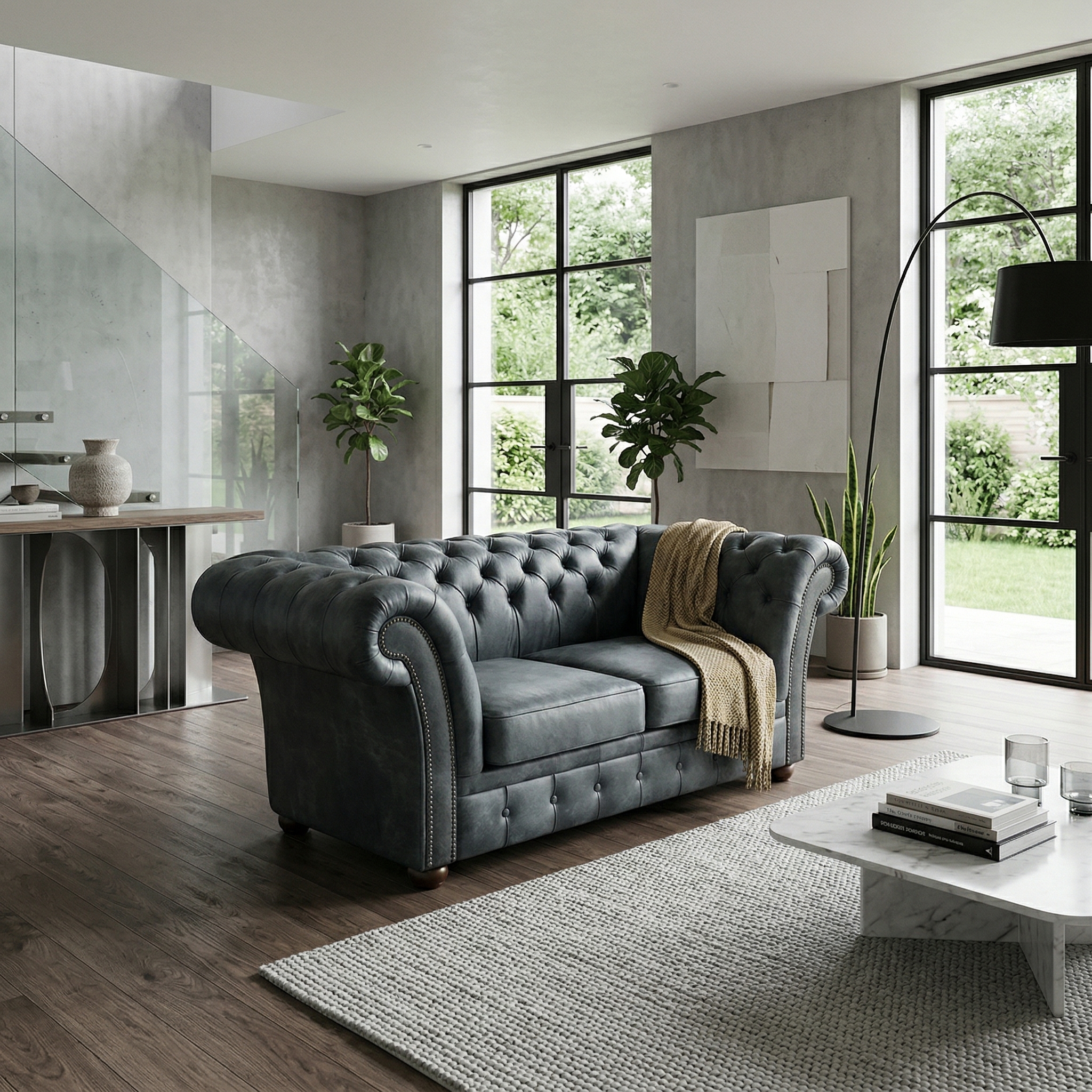 Chesterfield Sofa Couch Leder Anthrazit 1,80 m