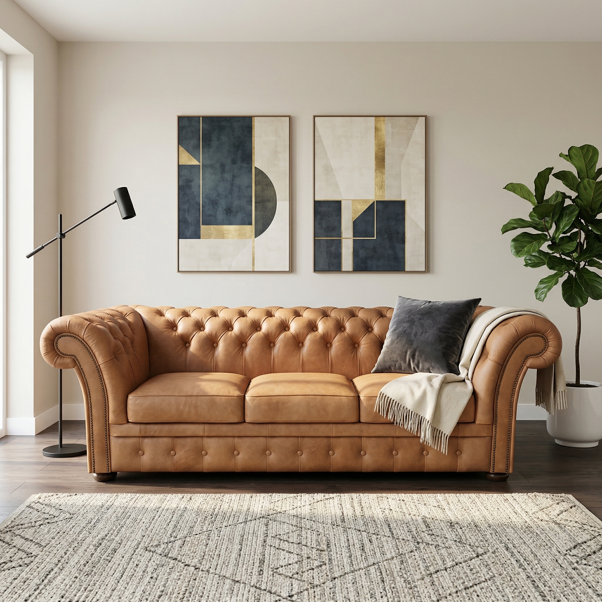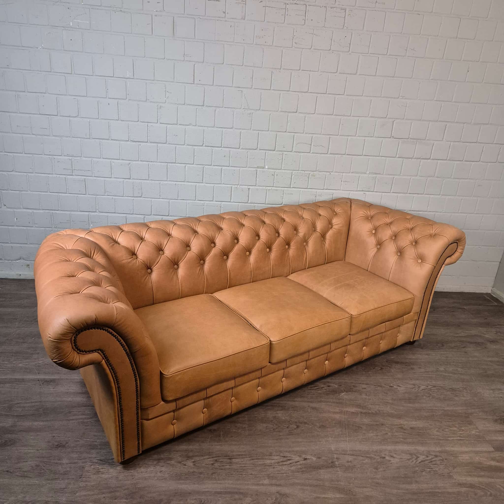Chesterfield Sofa Couch Leder Camel 2,45 m