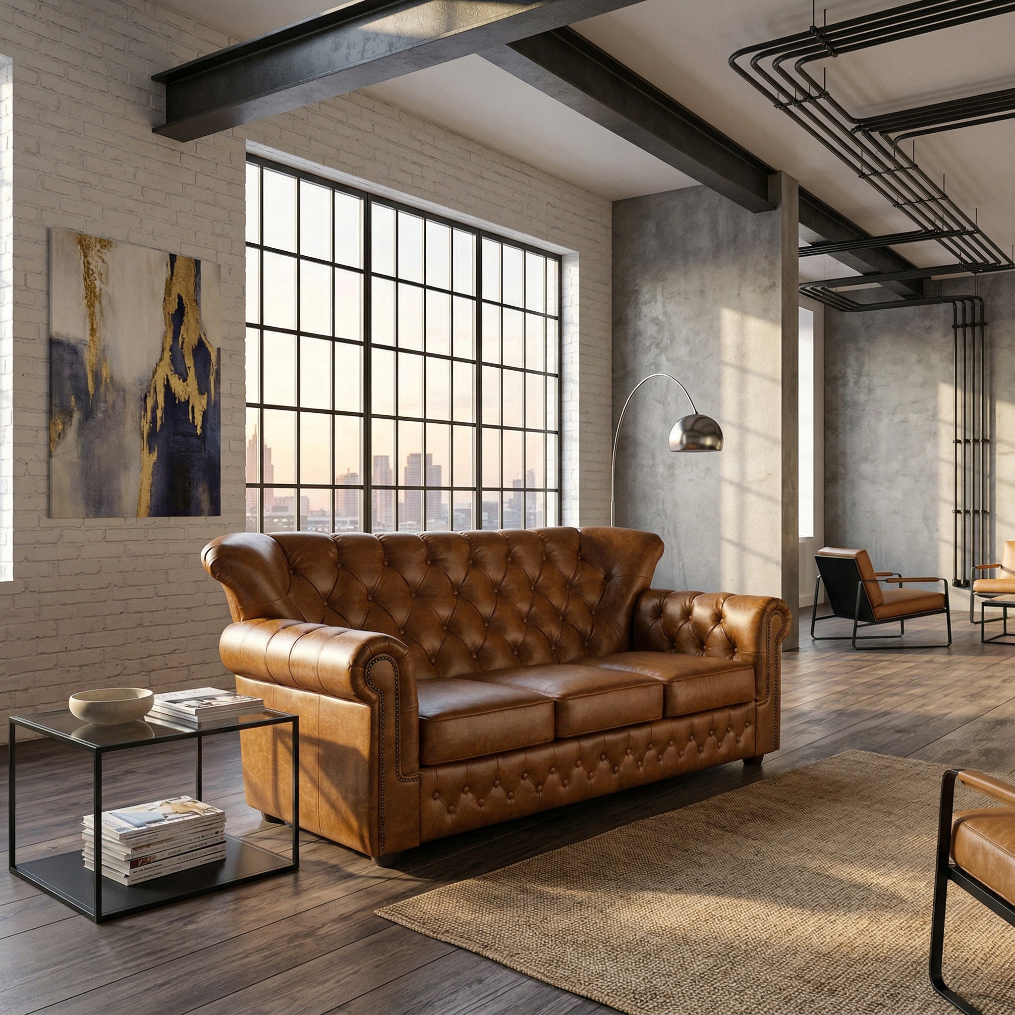 Chesterfield Sofa Couch Leder Cognac 1,95 m