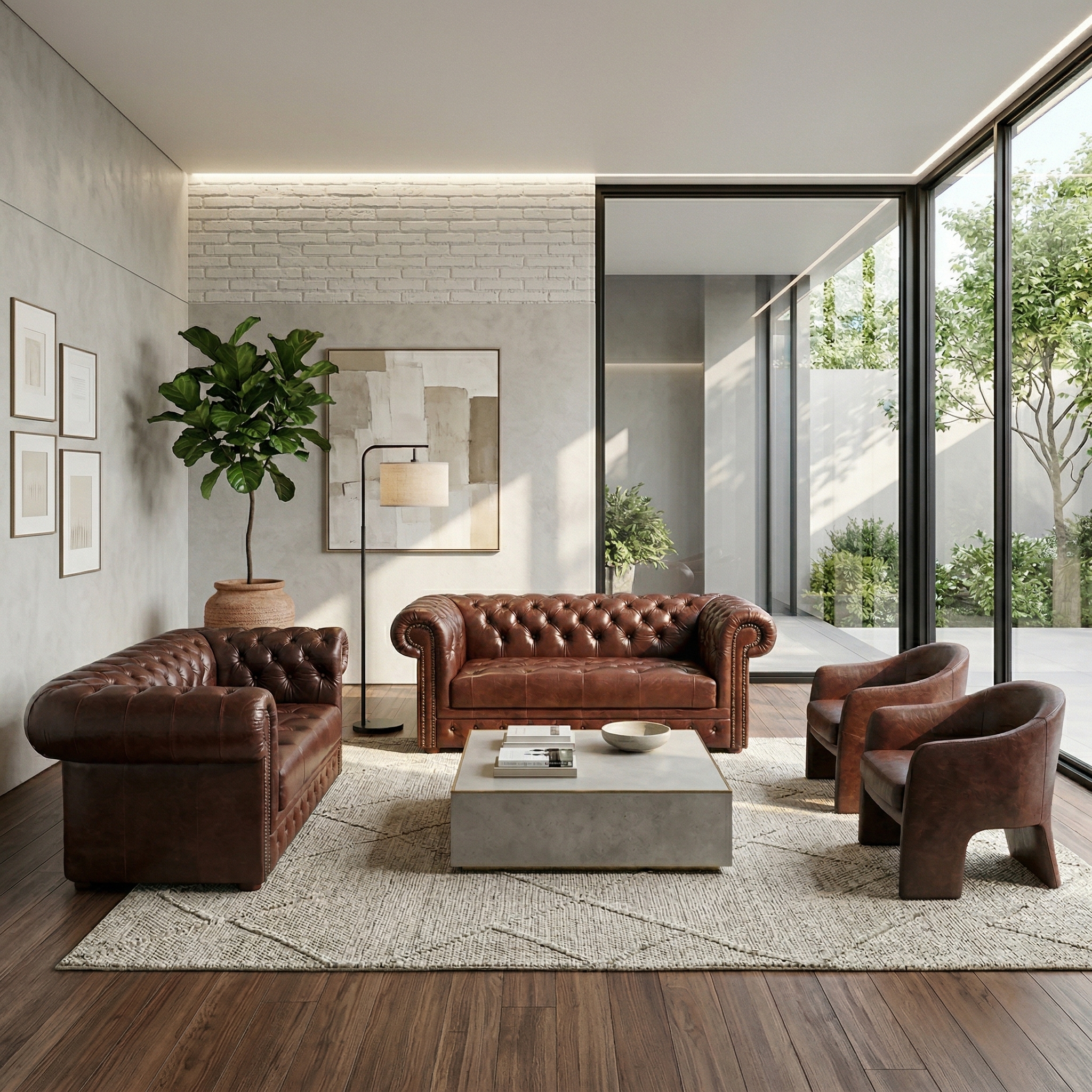 Chesterfield Sofa Couch Leder Kastanienbraun 1,65 m Set