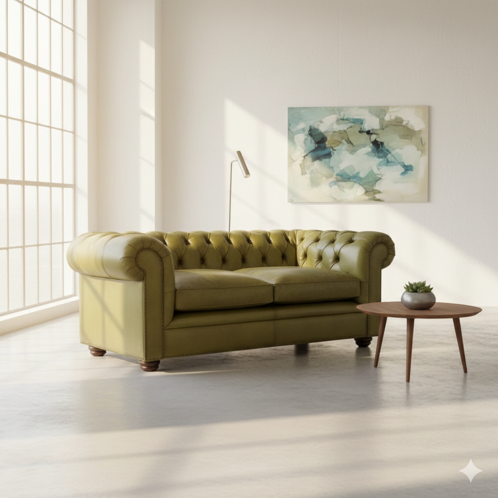 Chesterfield Sofa Couch Leder Lime 1,90 m