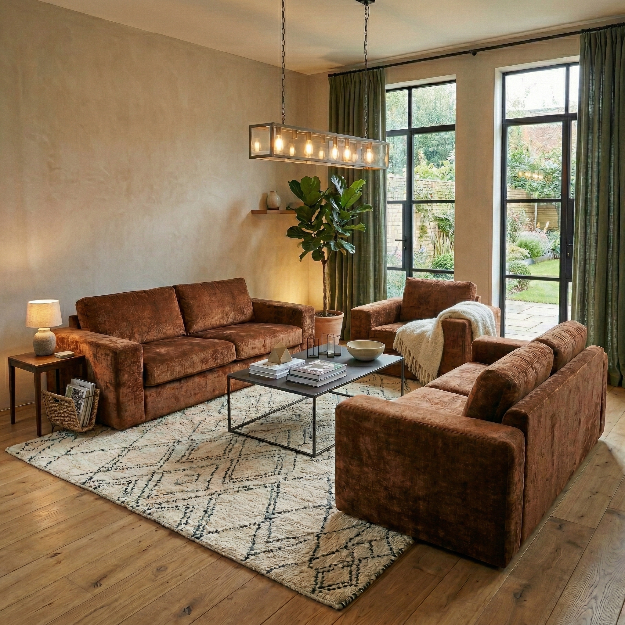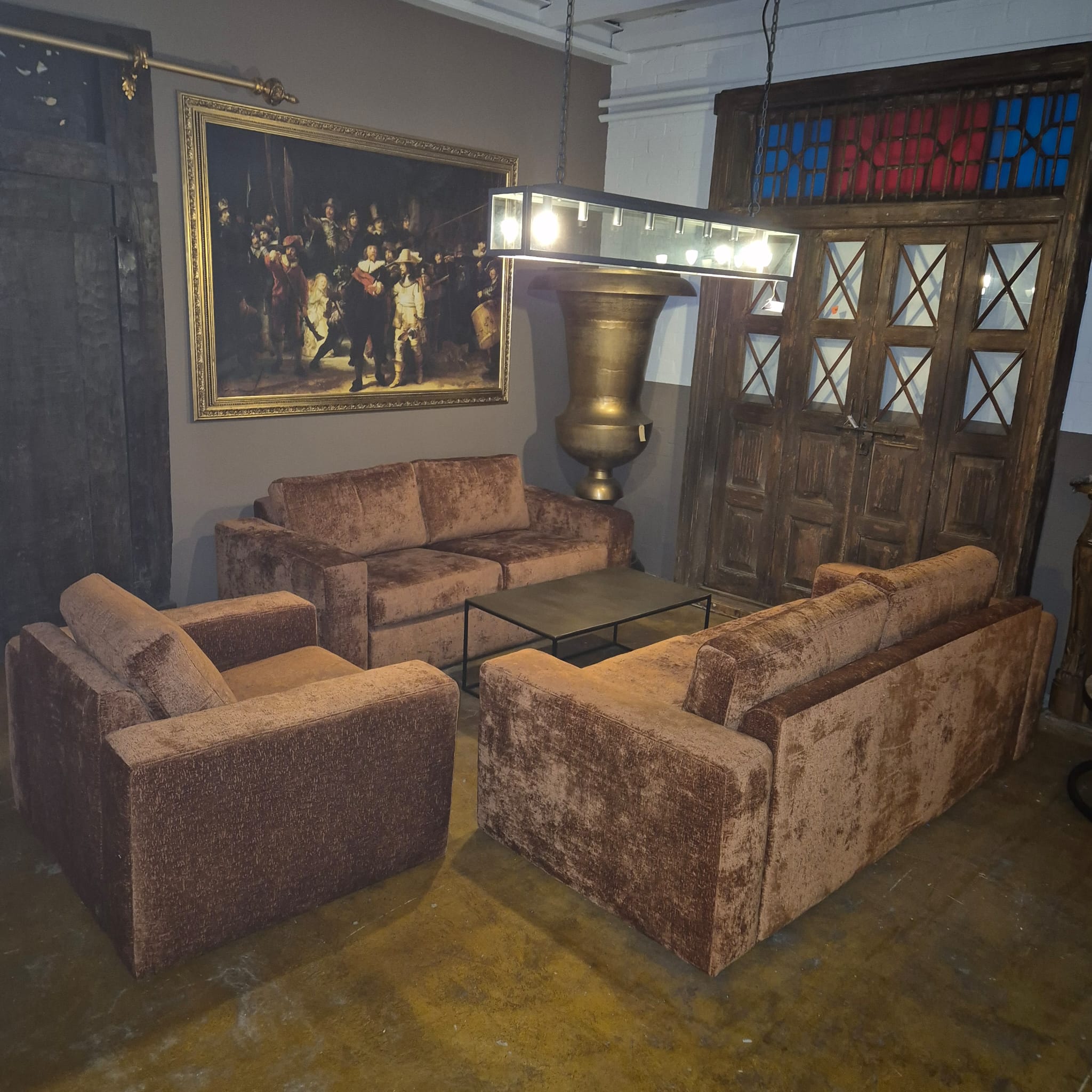Couchgarnitur Sofa Couch Sessel Rostbraun 2,5-2-1 Velours