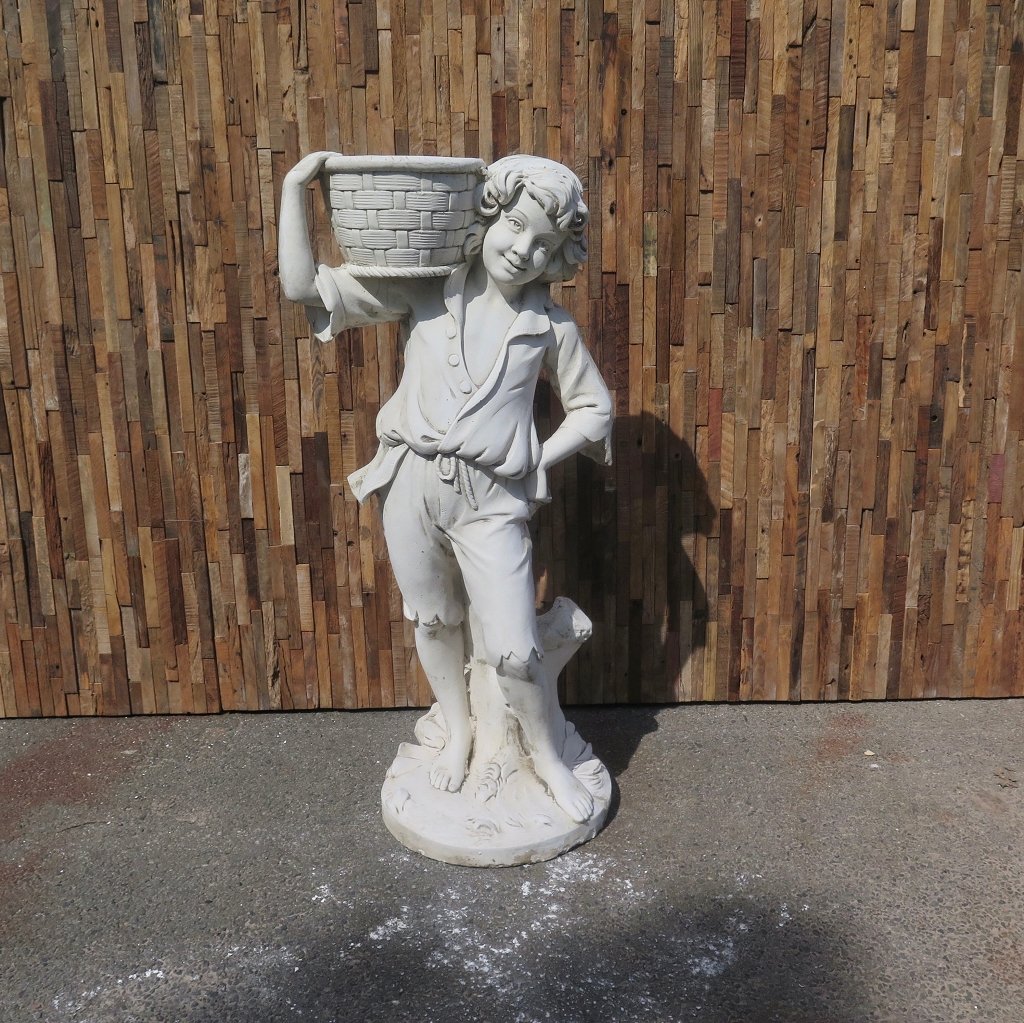 In nostalgischer Optik gestaltete Dekoration aus Beton mit der Darstellung eines Bauernjungen mit Korb. Maße: Breite 0,50 m Höhe 1,10 m Tiefe 0,30 m