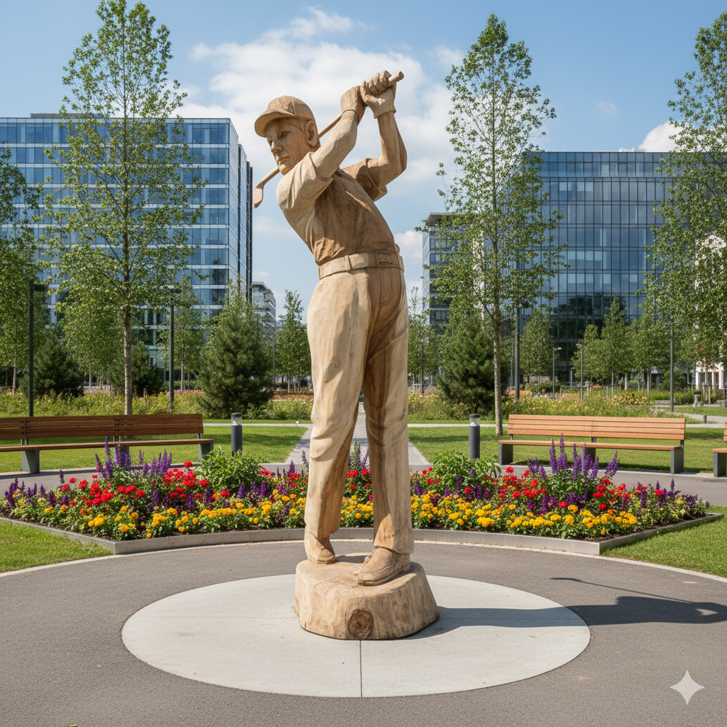 Einzigartige aus einem Stück Teakholz geschnitzte Darstellung eines Golfspieler. Maße: Breite 0,64 m Höhe 2,20 m Tiefe 0,64 m Bei dem angegeben Preis handelt es sich um den Abholpreis. Der Versand dieses Artikels ist gegen Übernahme der Versandkosten möglich.