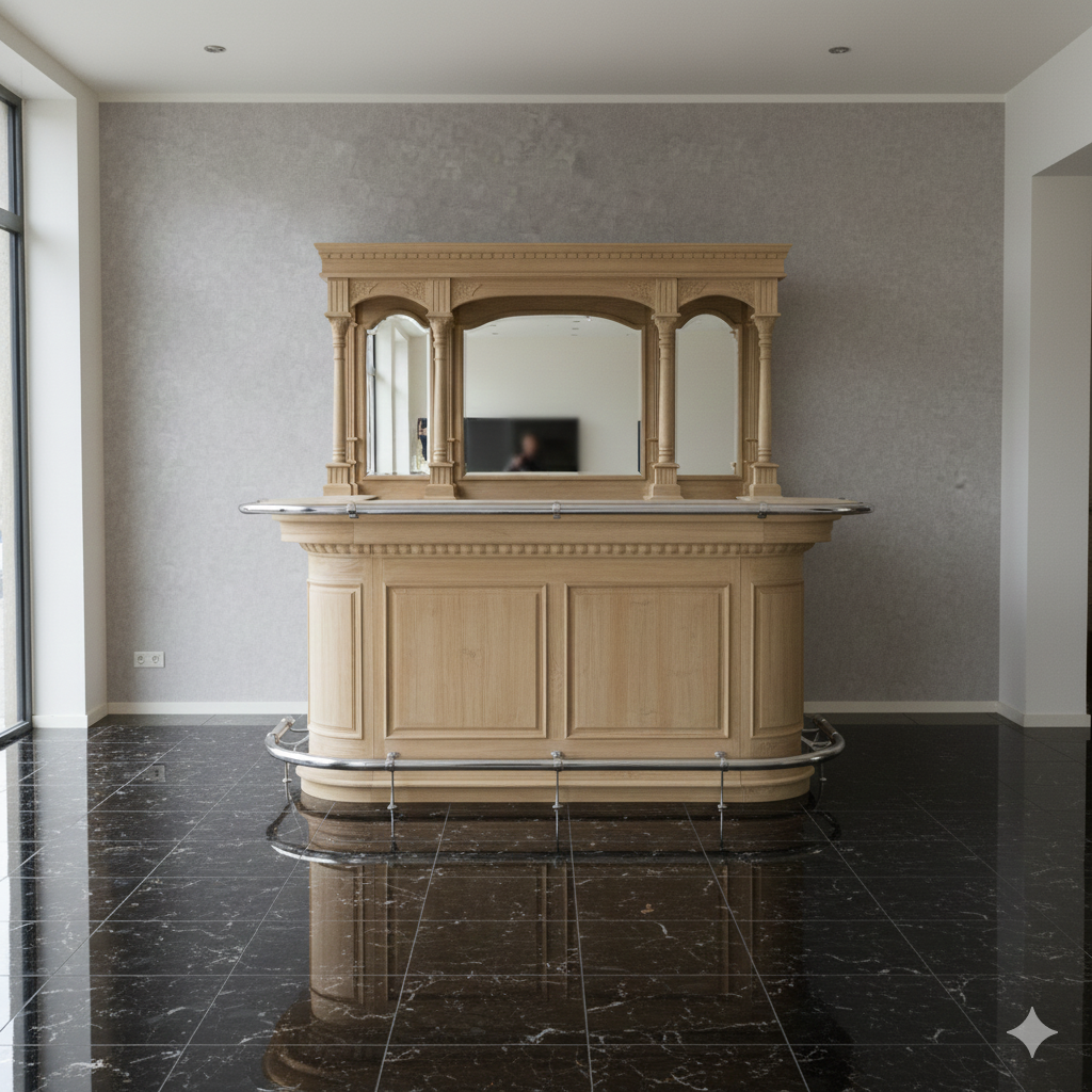 Diese stilvoll gestaltete englische Bar aus massiv Teakholz erhält ihre besondere Wirkung durch natürliche Unregelmäßigkeiten im Holz. Diese entstehen durch das verwendete Edelholz mit seinen verschiedenen Farben und Strukturen, welche diesem Stück einen eigentümlichen Charakter verleihen und es zu einem Unikat machen. Maserung und Farbton des Holzes tragen sehr zum optischen Wert dieser Möbel bei, die sowohl dekorative Möglichkeiten als auch genügend Stauraum bieten. Die Kombination von nostalgischer Optik und moderner Funktionalität ist für alle Gastronomieeinrichtungen sowie vielen weiteren Einsatzgebieten geeignet. Die Bar wird komplett fertig montiert geliefert und ist somit sofort einsatzbereit. Zerlegbar (7-teilig).
