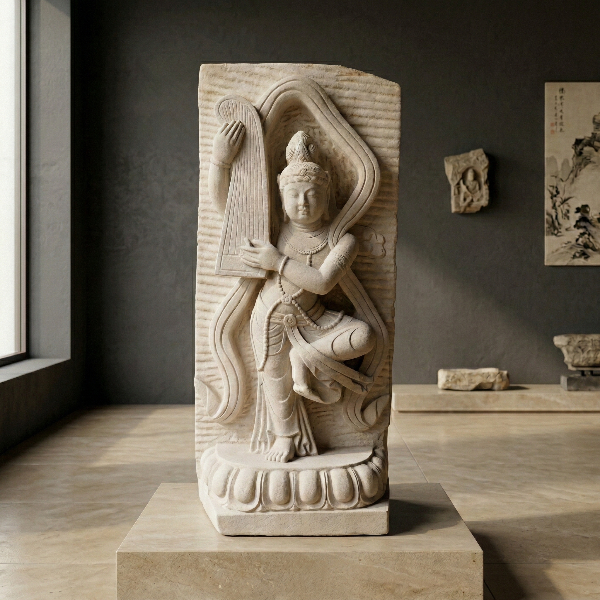 Ca. 20 Jahre alte Darstellung der Göttin Sarasvati hergestellt aus Granit.   Maße:   Breite 0,50 m Höhe 1,08 m Tiefe 0,27 m