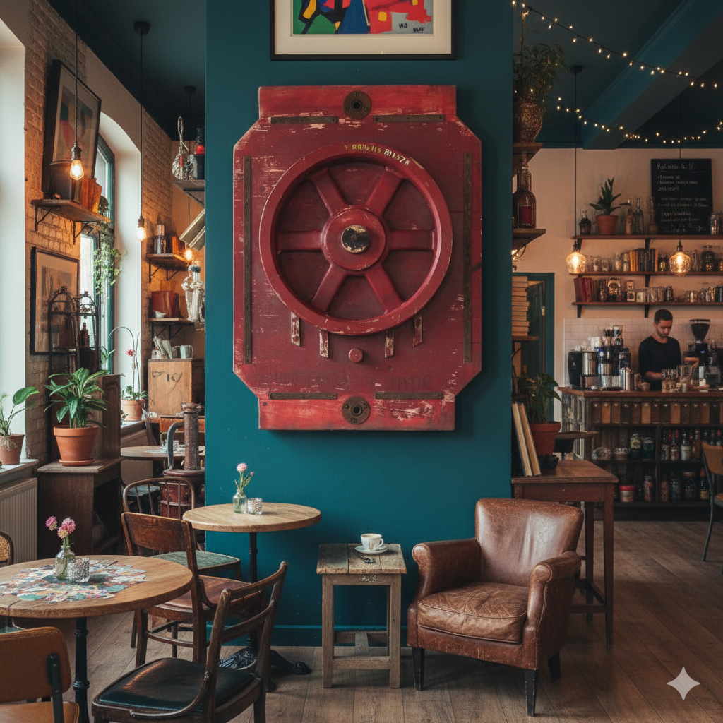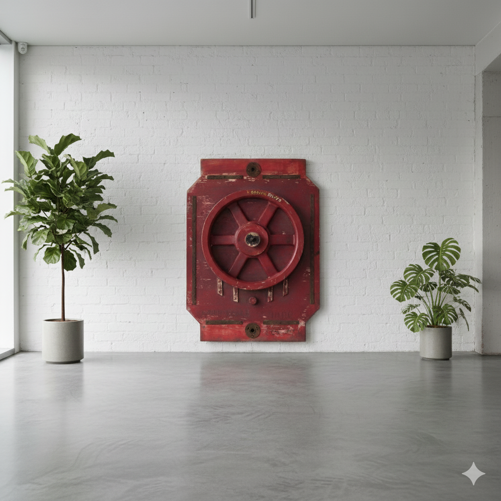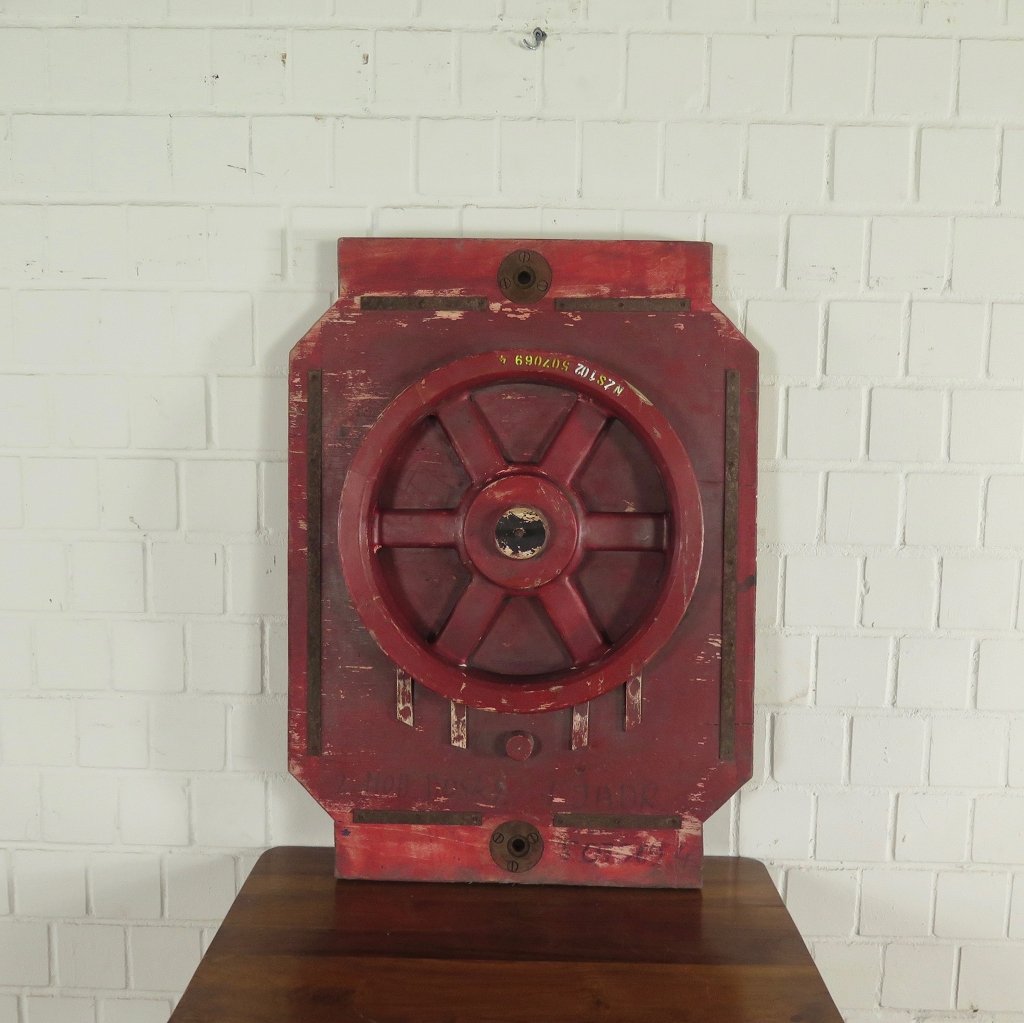 Im Originalzustand stehende Gussform aus mit Kunststoff bezogenen Massivholz von ca. 1950. Die aus der Metallindustrie stammende Form befindet sich in einem guten Zustand und weist nur normale Gebrauchsspuren auf. Sie ist frei von Wurmbefall. Maße: Breite 0,70 m Höhe 0,97 m