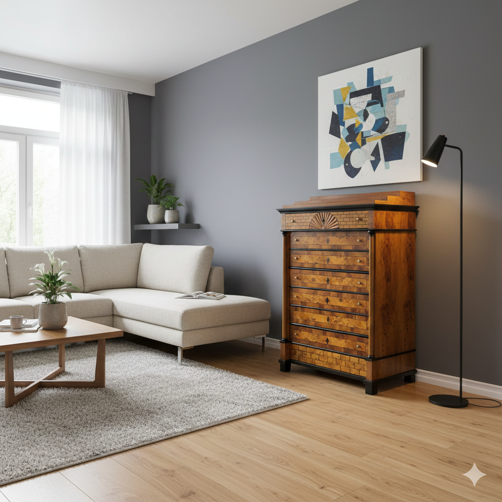 Hochkommode Biedermeier 1840 Nussbaum / Kirschbaum