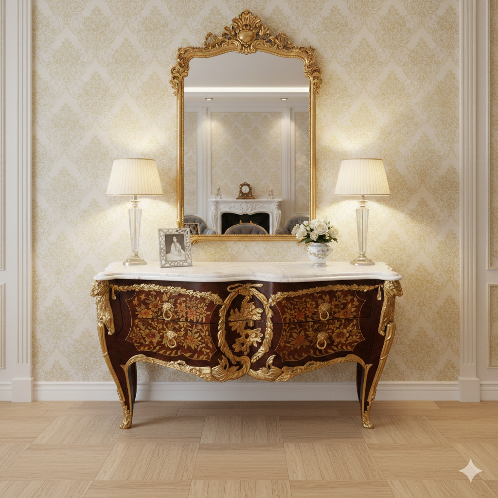 Kommode Nussbaum Marmor 1,55 m Versace-Stil