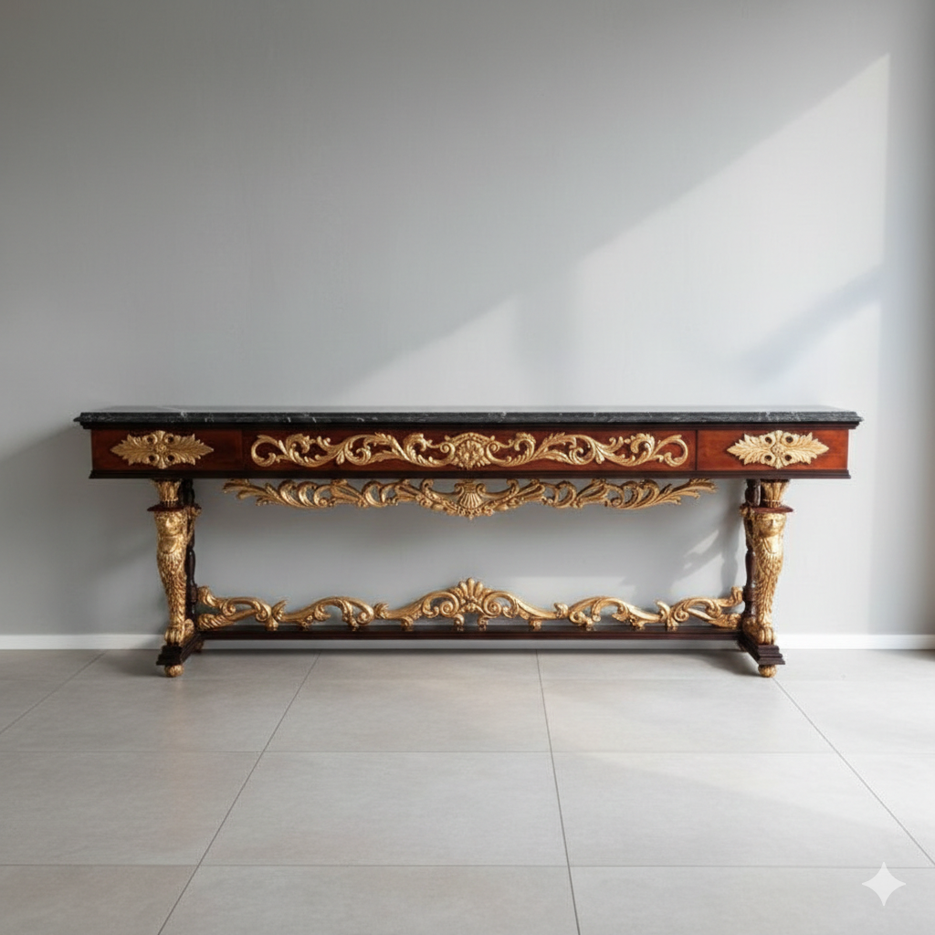 Konsolentisch Wandtisch Barockstil Nussbaum Marmor