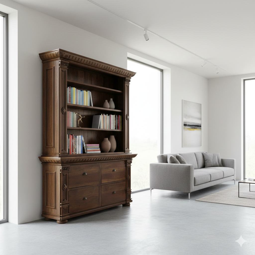 Dieser Ladenschrank aus massiv Teakholz besticht durch seine stilvolle Eleganz und der aufwendigen Verarbeitung. Die Kombination von nostalgischer Optik und moderner Funktionalität ist für alle Ladeneinrichtungen sowie vielen weiteren Einsatzgebieten geeignet. Der Schrank wird komplett fertig montiert geliefert und ist somit sofort einsatzbereit. • massiv Teakholz • Farbton: Kolonial gebeizt Ausstattung: • 3 verstellbare Regalboden … Weiterlesen