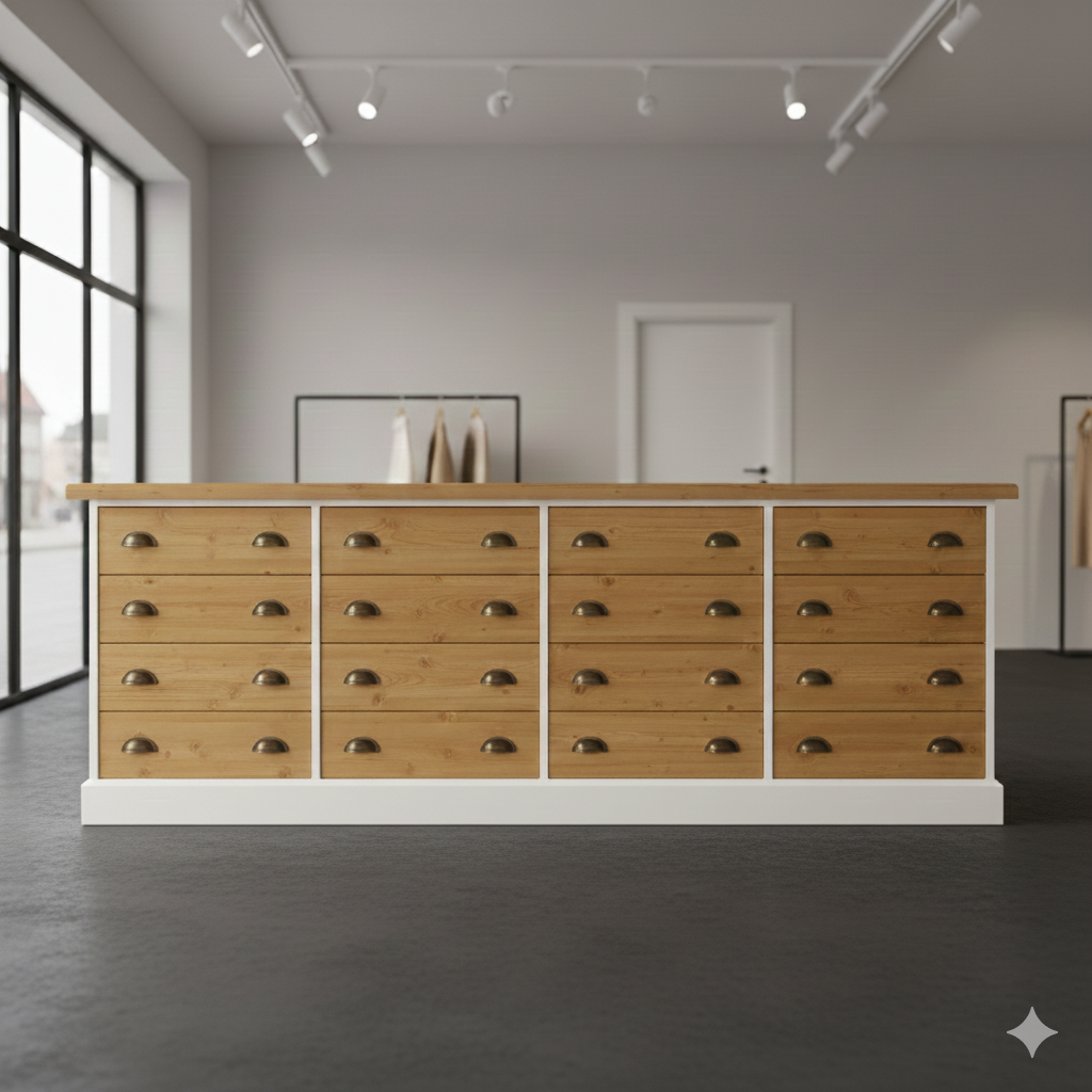 Der Verkaufstresen Modell Judith aus Massivholz besticht durch seine stilvolle Eleganz und der aufwendigen Verarbeitung. Die Kombination von nostalgischer Optik und moderner Funktionalität ist für alle Ladeneinrichtungen sowie vielen weiteren Einsatzgebieten geeignet. Der Tresen wird komplett fertig montiert geliefert und ist somit sofort einsatzbereit. • Massivholz • Farbton: Arbeitsplatte und Schubladen Kiefer gebeizt und Klarlack … Weiterlesen