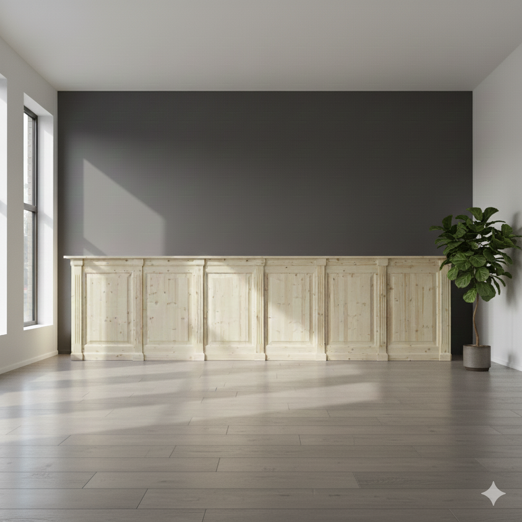 Stilvolle Paneele hergestellt aus massiv Kiefer (unbehandelt). Stückpreis. Maße: Länge 0,75 m Höhe 1,00 m Gegen Aufpreis kann dieser Artikel auch in Wunschfarbe geliefert werden.