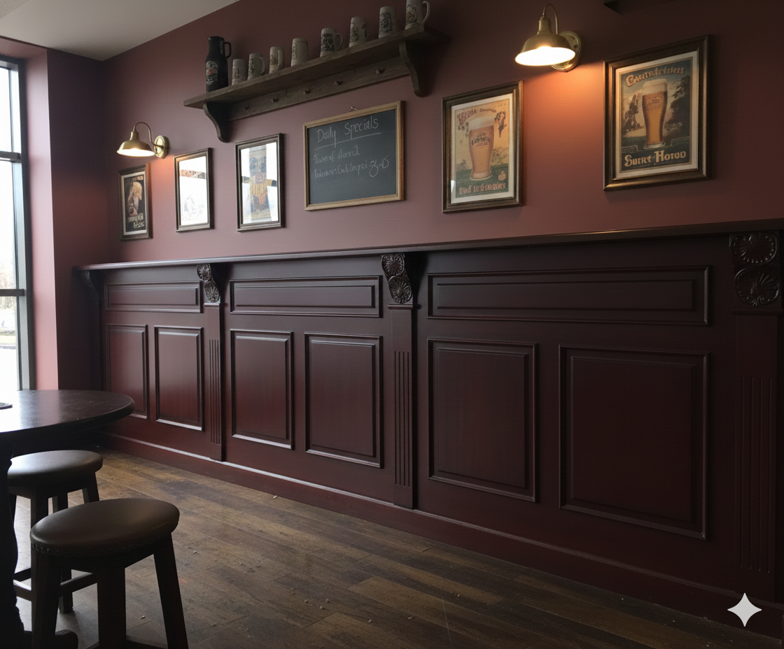 Stilvolle Paneele aus massiv Mahagoni geeignet zur Wandverkleidung. Preis pro Paneele (5-teilig). Farbton: Mahagoni gebeizt und Klarlack versiegelt Maße: Breite 1,25 mHöhe 1,16 mTiefe 0,02 m