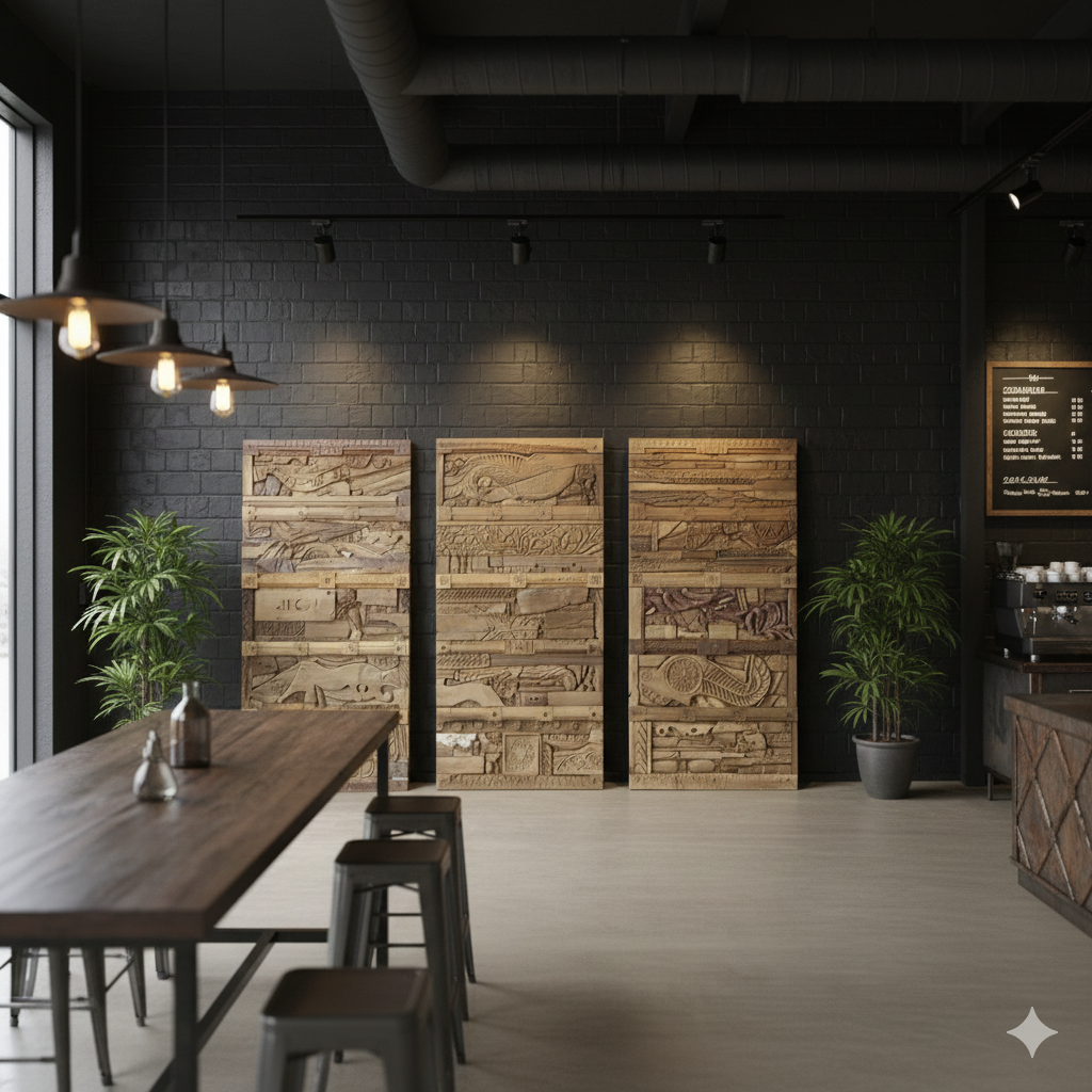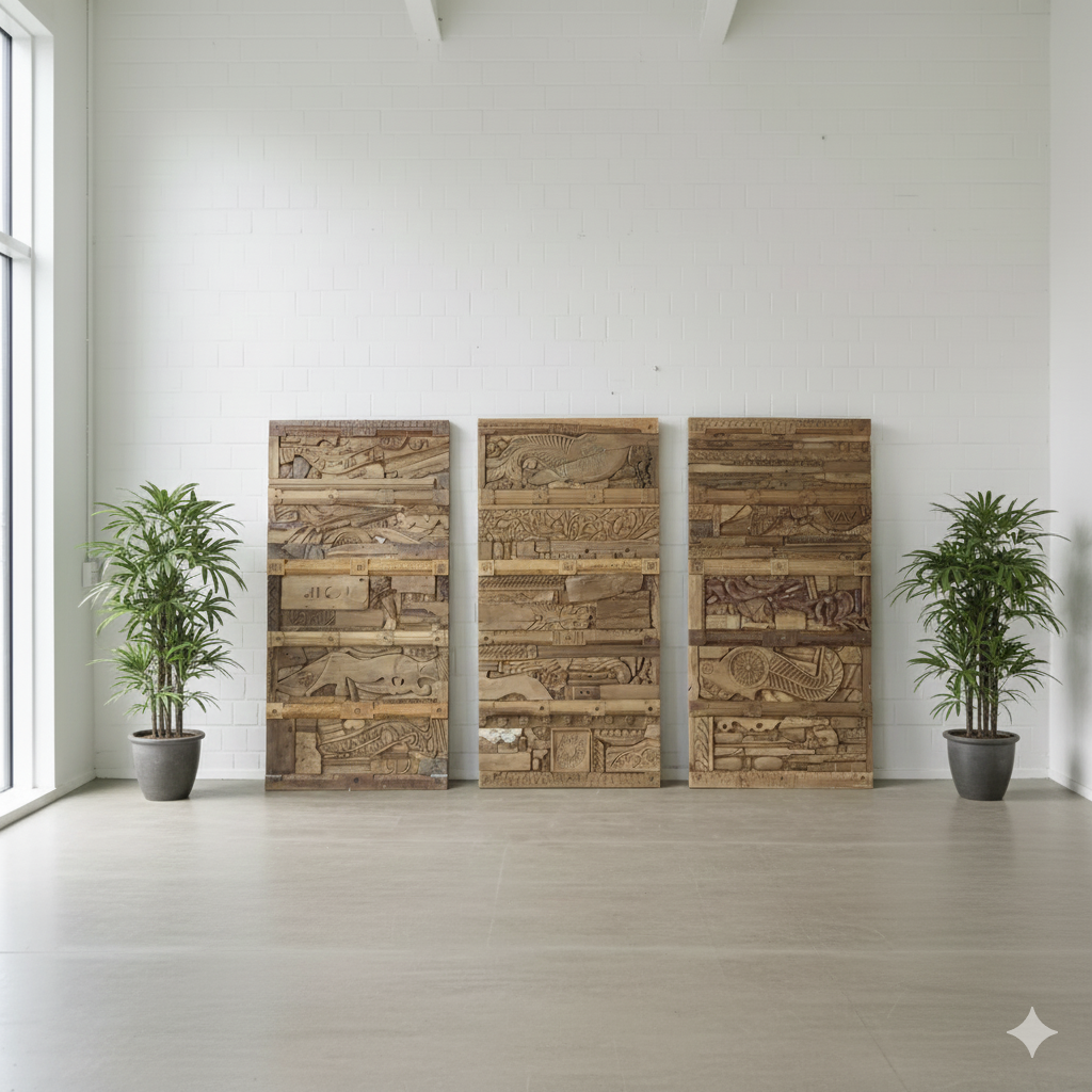 Paneele Wandverkleidung Wandbild Indien Teakholz 0,90 m x 1,80 m