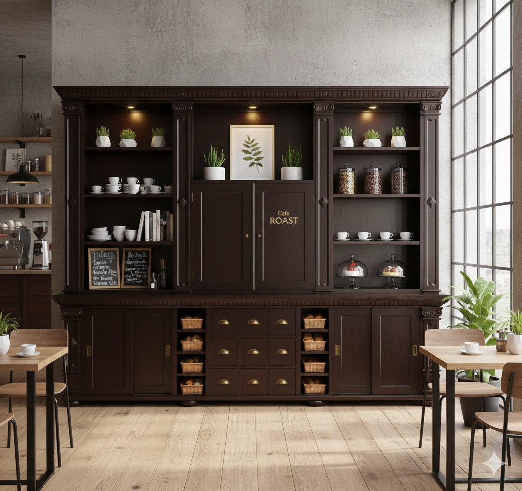 Dieser stilvoll gestaltete Schrank Modell Bella aus massiv Mahagoni erhält seine besondere Wirkung durch natürliche Unregelmäßigkeiten im Holz. Diese entstehen durch das verwendete Edelholz mit seinen verschiedenen Farben und Strukturen, welche diesem Stück einen eigentümlichen Charakter verleihen und es zu einem Unikat machen. Maserung und Farbton des Holzes tragen sehr zum optischen Wert dieses Möbels bei, das sowohl dekorative Möglichkeiten als auch genügend Stauraum bietet. Die Kombination von nostalgischer Optik und moderner Funktionalität ist für alle Ladeneinrichtungen sowie vielen weiteren Einsatzgebieten geeignet. Der Schrank wird komplett fertig montiert geliefert und ist somit sofort einsatzbereit. Zerlegbar (2-teilig).