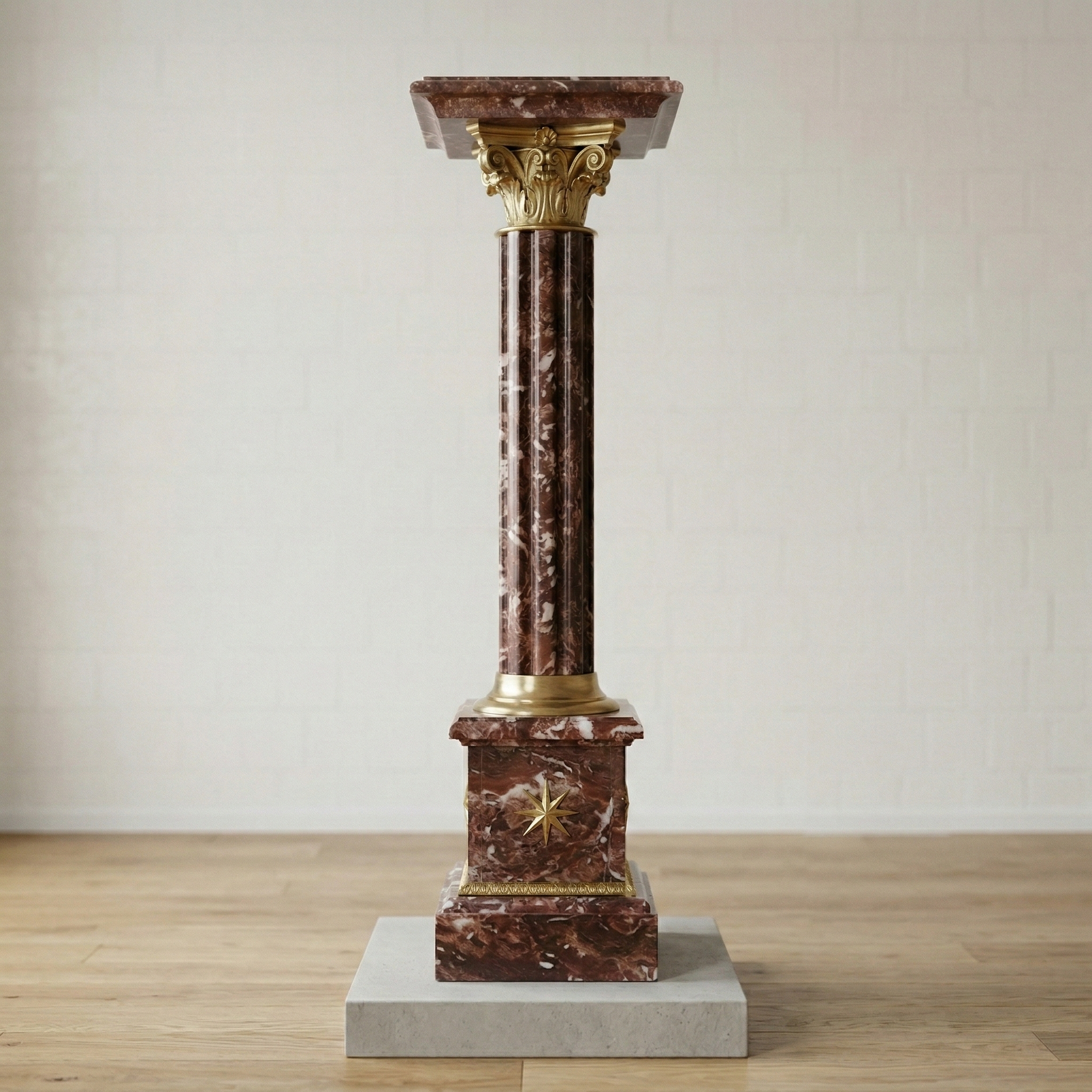 Hochwertige Säule aus Marmor mit Verzierungen aus Messing. Stückpreis. Maße: Breite 0,27 m Höhe 1,05 mTiefe 0,27 m