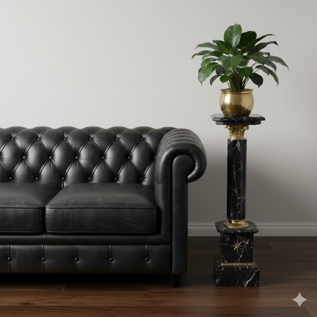 Säule Pfeiler Marmor Schwarz 1,03 m