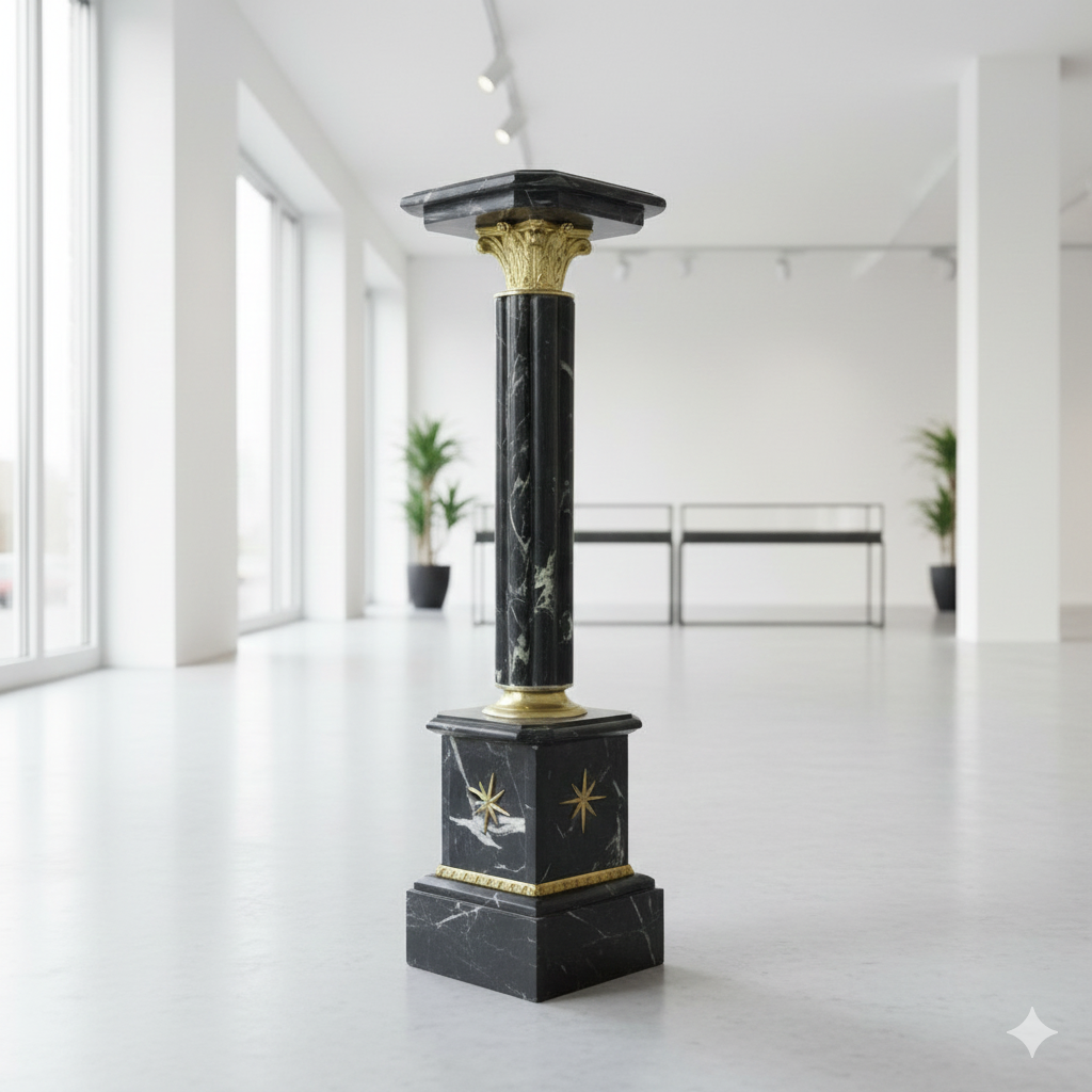 Hochwertige Säule aus Marmor mit Verzierungen aus Messing. Stückpreis. Maße: Breite 0,26 mHöhe 1,03 mTiefe 0,26 m