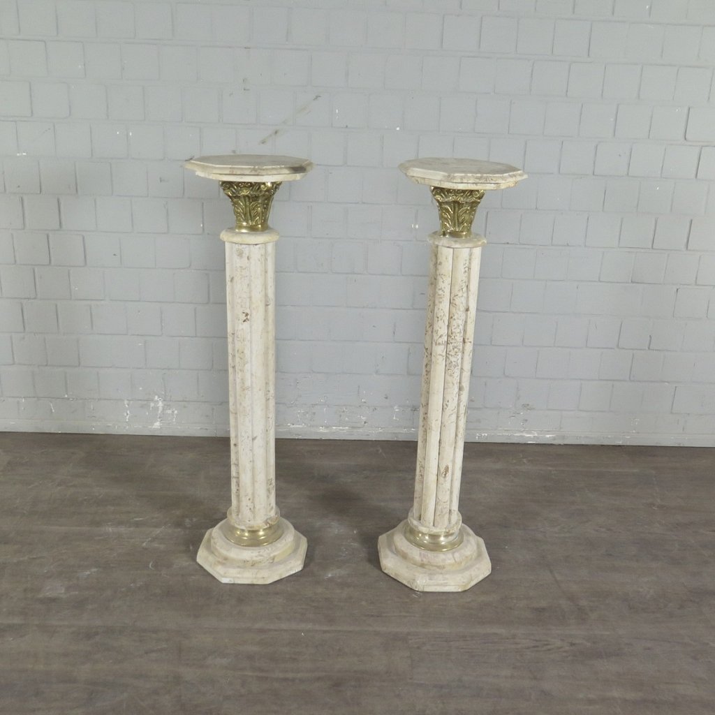 Hochwertige Säulen aus Marmor mit Verzierungen aus Messing. Setpreis. Maße: Breite 0,32 m Höhe 1,15 mTiefe 0,32 m