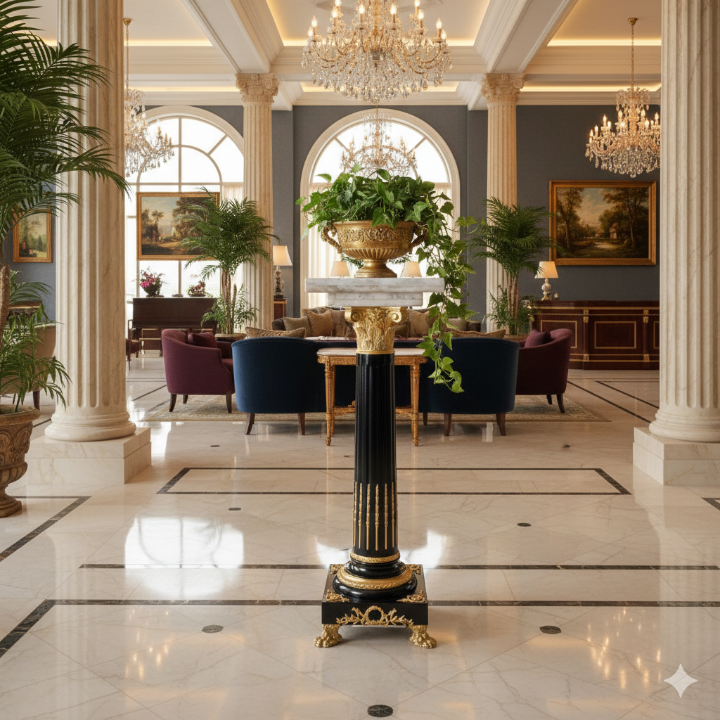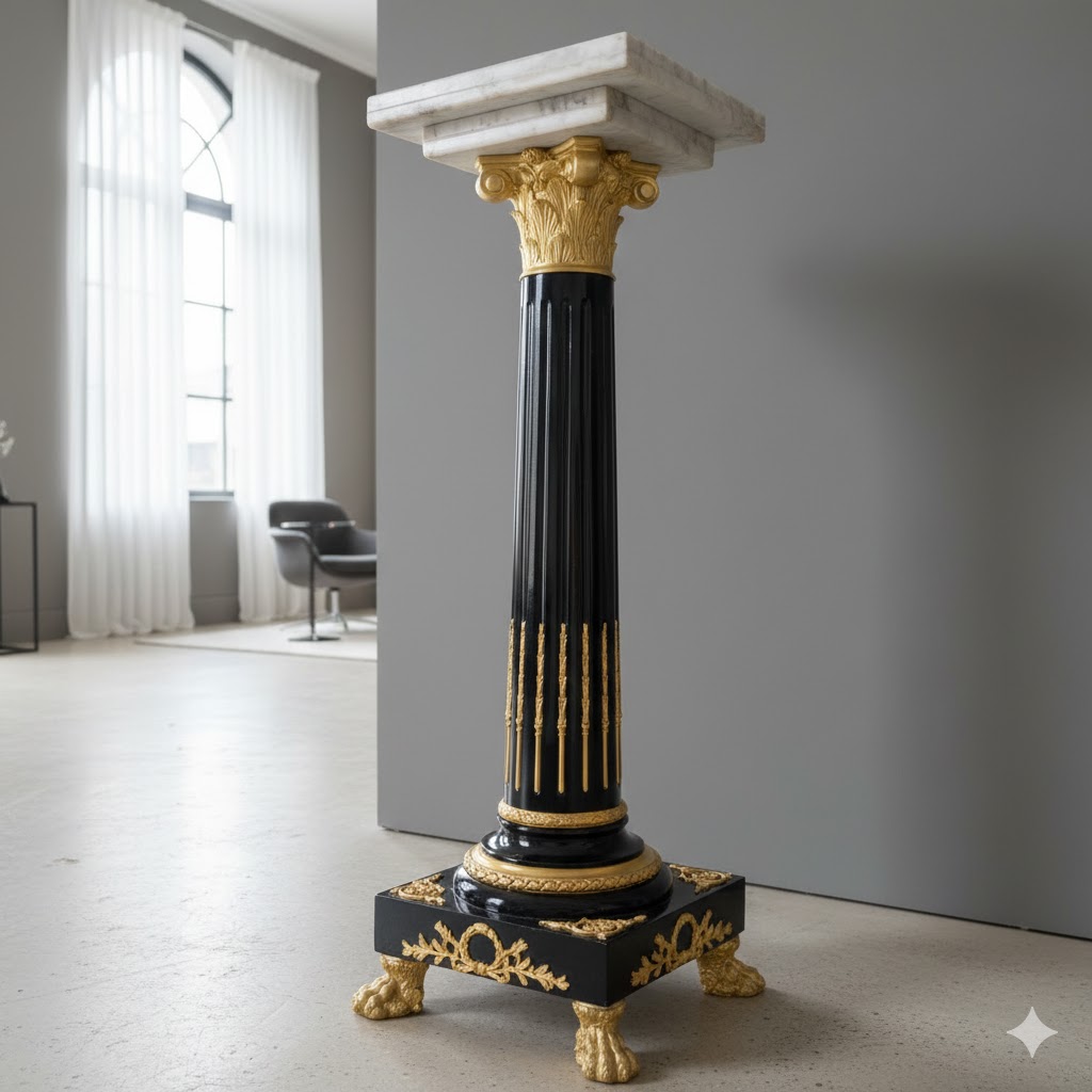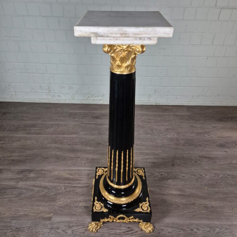 Hochwertige Säule aus Marmor mit Verzierungen aus Bronze. Stückpreis. Maße: Breite 0,35 m – 0,45 mHöhe 1,32 mTiefe 0,35 m – 0,45 m