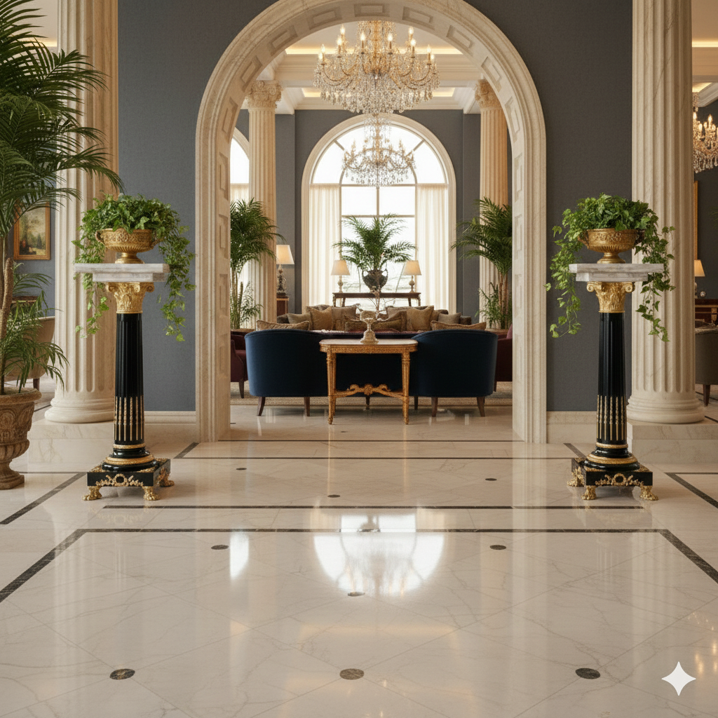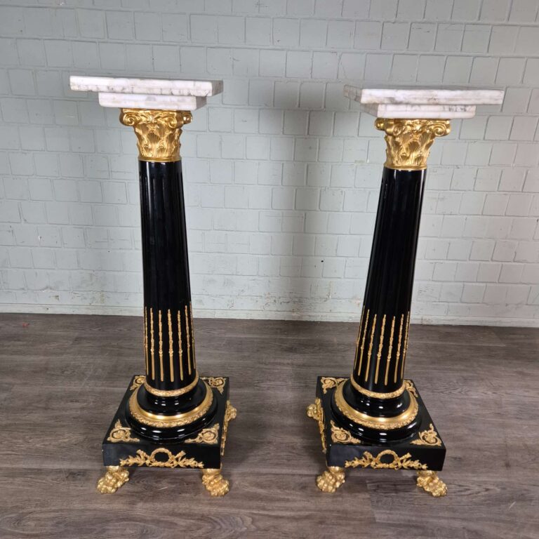 Hochwertige Säulen aus Marmor mit Verzierungen aus Bronze. Setpreis. Maße: Breite 0,35 m – 0,45 mHöhe 1,32 mTiefe 0,35 m – 0,45 m