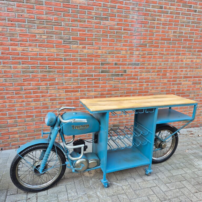 Diese einmalig gestaltete Minibar aus Original-Rollerteilen erhält seine besondere Wirkung durch die verwendeten Materialien, welche diesem Stück einen eigentümlichen Charakter verleihen und es zu einem Unikat machen. Machart und Farbton des Metalls tragen sehr zum optischen Wert dieses Möbels bei, das sowohl dekorative Möglichkeiten als auch genügend Stauraum bietet.   für 12 Flaschen geeignet 4 … Weiterlesen