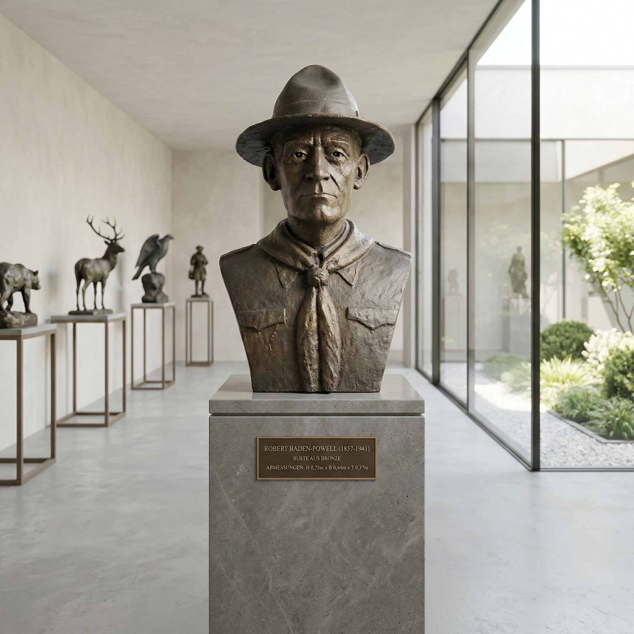 Doppio busto di scout in bronzo – Tradizione e Comunità Questo busto in bronzo individuale cattura lo spirito del movimento scout. La rappresentazione dettagliata mostra un giovane uomo con cappello caratteristico e fazzoletto al collo. La scultura si trova su un basamento di pietra, che sottolinea la sua individualità. Realizzata in bronzo massiccio, emana stabilità e connessione – valori che vengono mantenuti nell’attività scout. … Continua a leggere