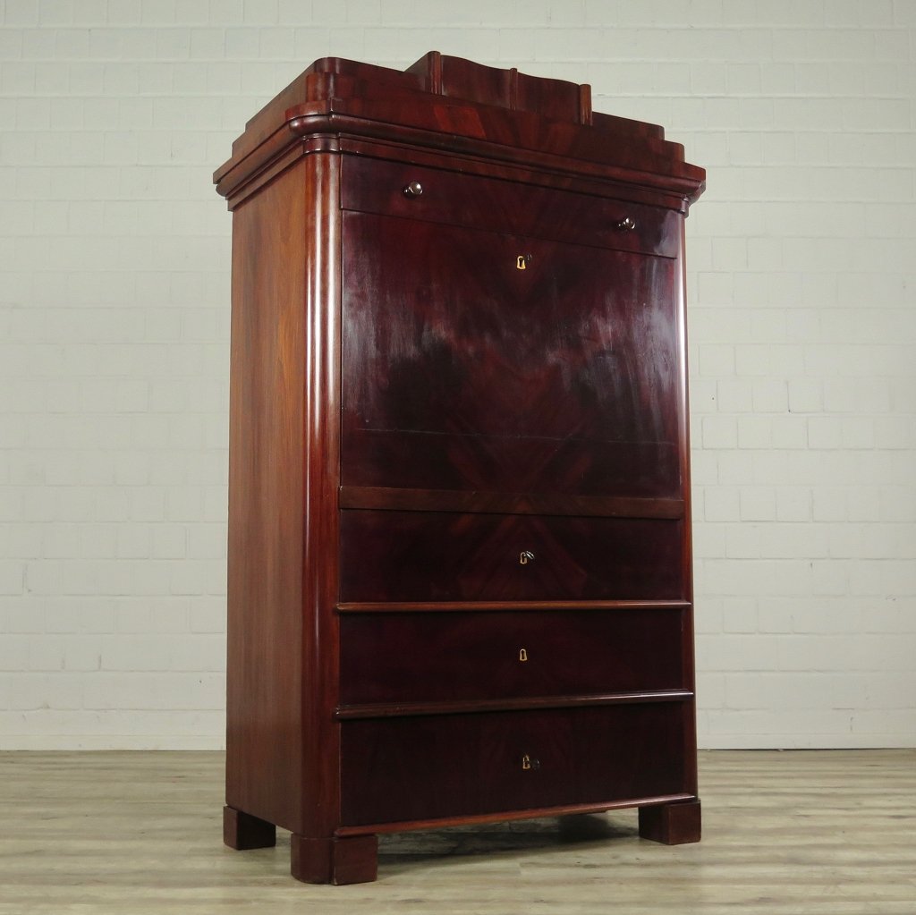 Restaurierter Biedermeier Sekretär in Mahagoni furniert von ca. 1860. Der Sekretär befindet sich in einem guten Zustand und weist nur leichte Gebrauchsspuren auf. Er ist frei von Wurmbefall. • 12 Schubladen • Mahagoni Furnier • Biedermeier ca. 1860 Maße: Breite 1,04 m Höhe 1,68 m Tiefe 0,54 m
