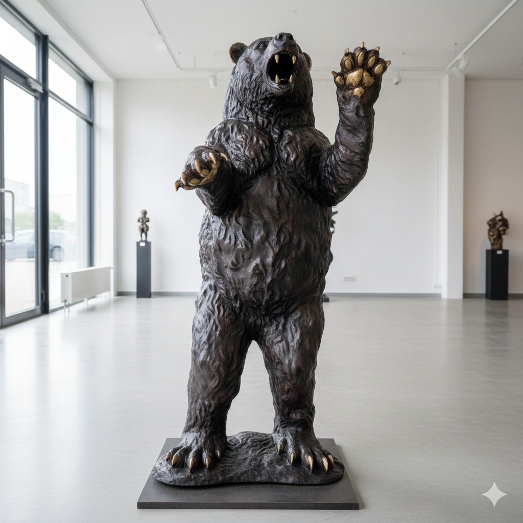 Detailgetreue und formschöne Darstellung eines Bären aus Bronze.  Maße: Breite 0,90 mHöhe 1,95 mTiefe 0,90 m