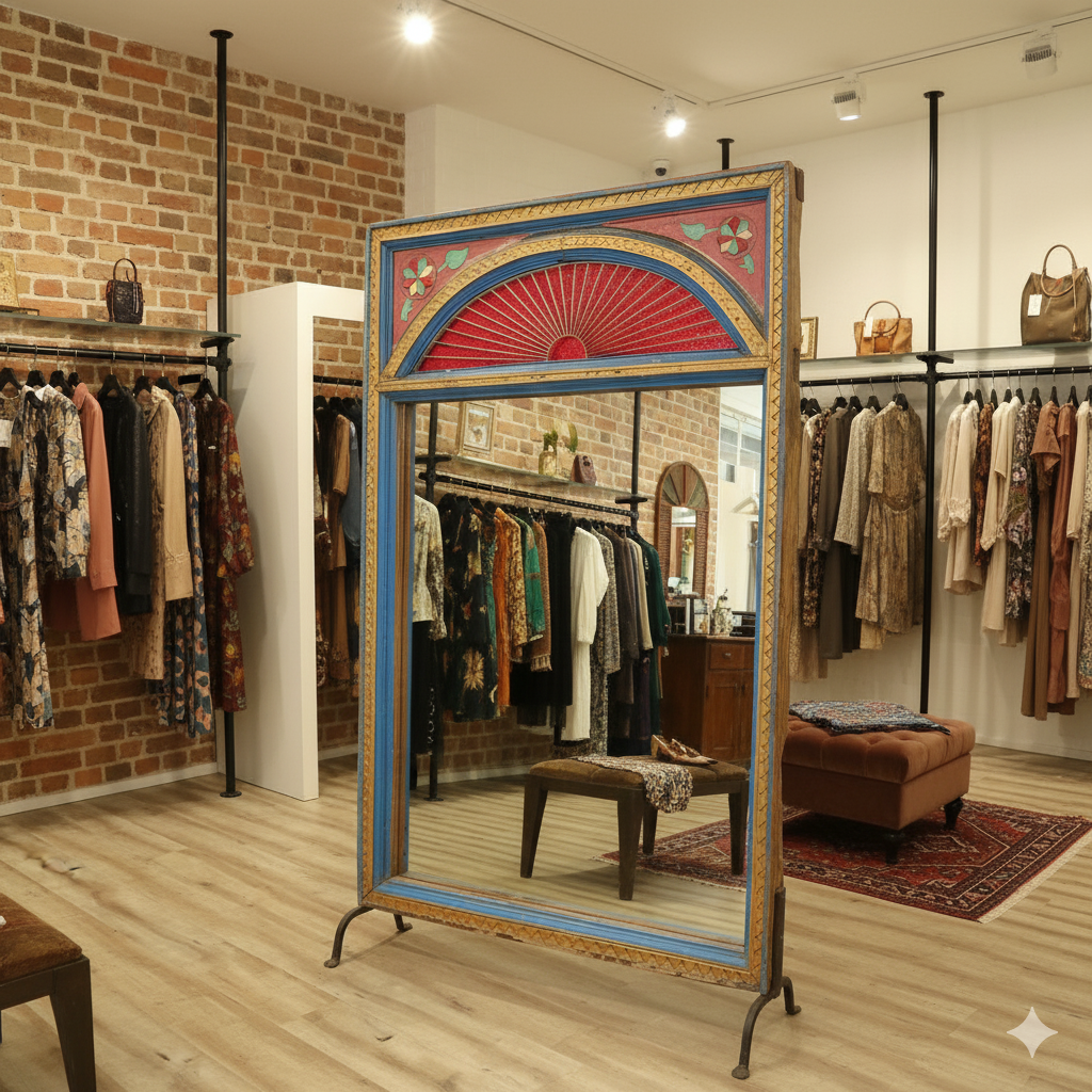 Einzigartiger Spiegel in Shabby-Chic Optik. Hergestellt aus einem antiken Fenster (Teakholz).  Maße: Breite 1,41 mHöhe 2,23 mTiefe 0,44 m