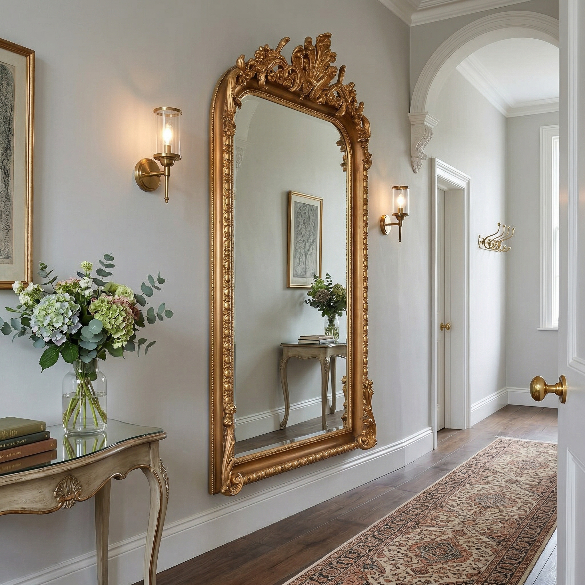 755,46€ Preis ohne SteuerAufwendig gestalteter Wandspiegel mit Facettenschliff. Der im Barockstil gestaltete Rahmen wurde aus Massivholz hergestellt. Farbton: Gold Abmessung Rahmen: Breite 1,15 m Höhe 2,20 m Tiefe 0,10 m – 0,17 m
