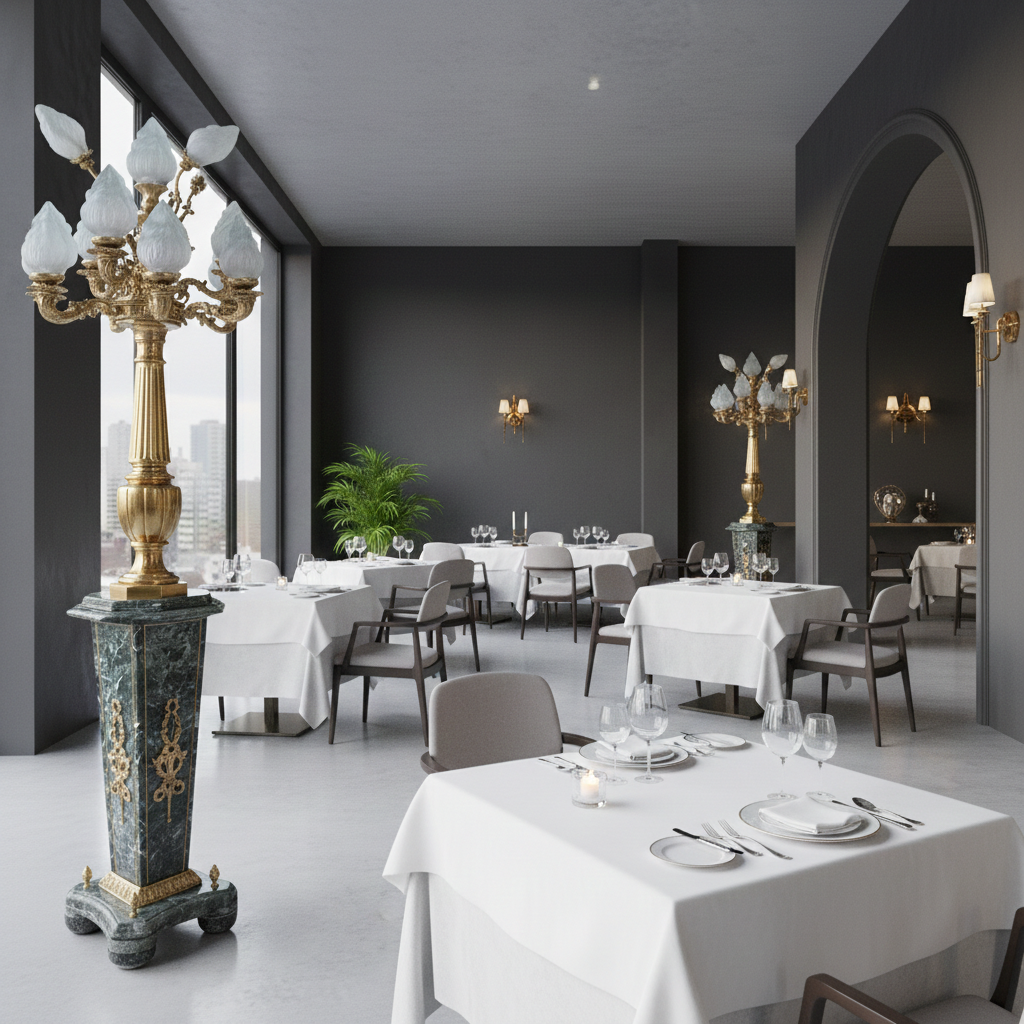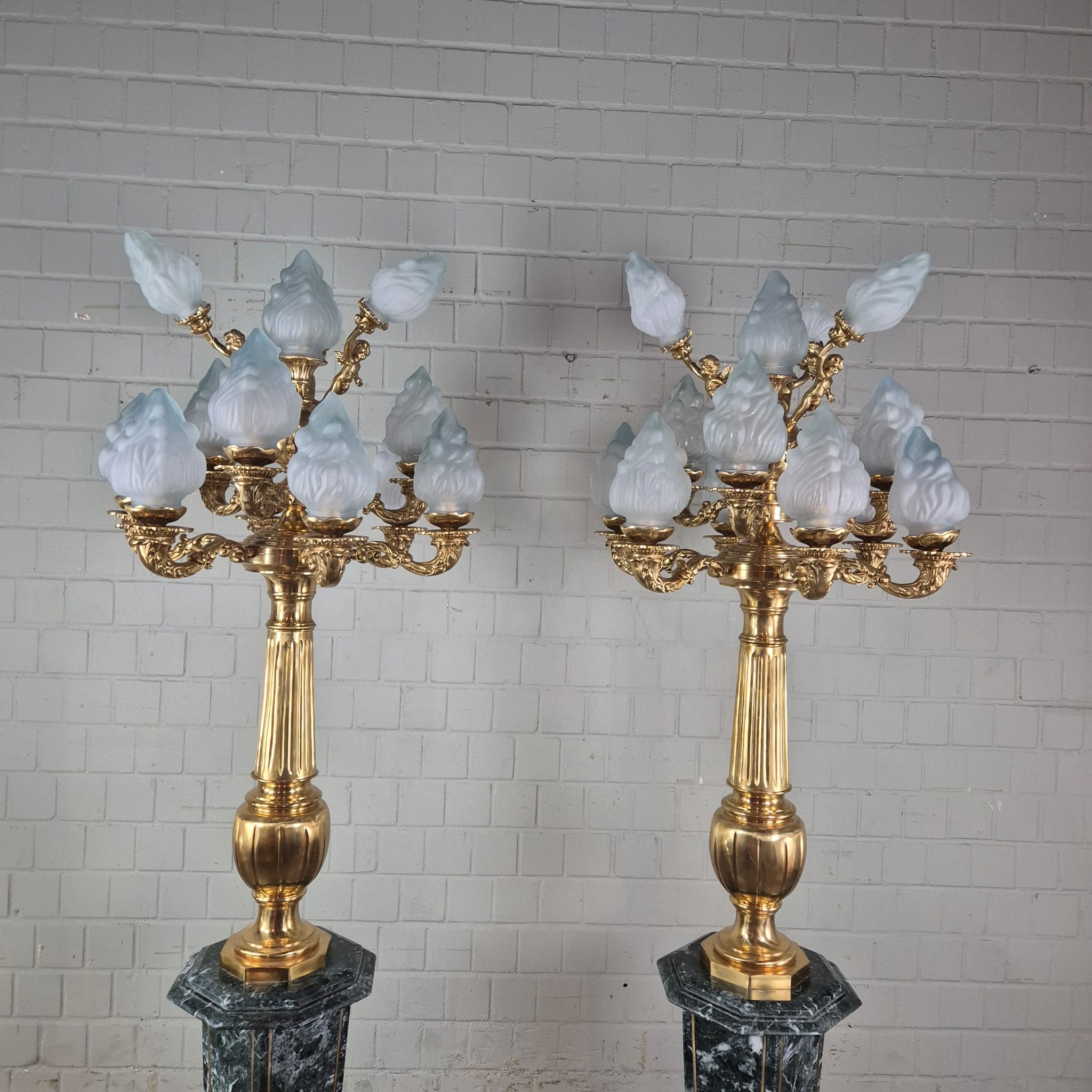 Hochwertige Lampe im Barockstil hergestellt aus Messing und Marmor. Stückpreis. Maße: Durchmesser 0,70 mHöhe 2,10 m