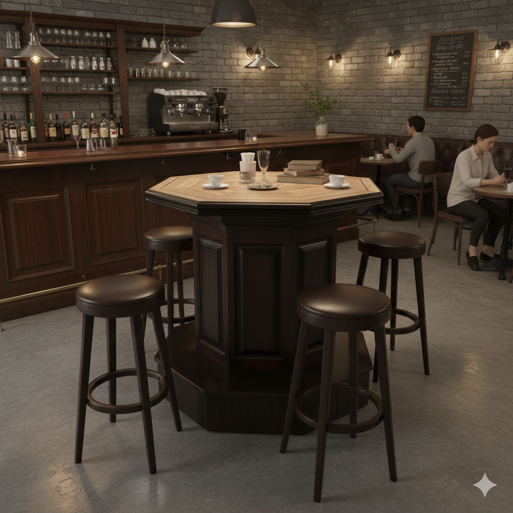 1.343,70€ Preis ohne SteuerKlassischer Klarlack versiegelter Stehtisch im englischen Stil. Der Tisch wurde aus massiv Kiefer und Eiche (Sockel und Parkett Platte) hergestellt. Zerlegbar (3-teilig). Maße: Durchmesser 1,20 m Höhe 1,13 m