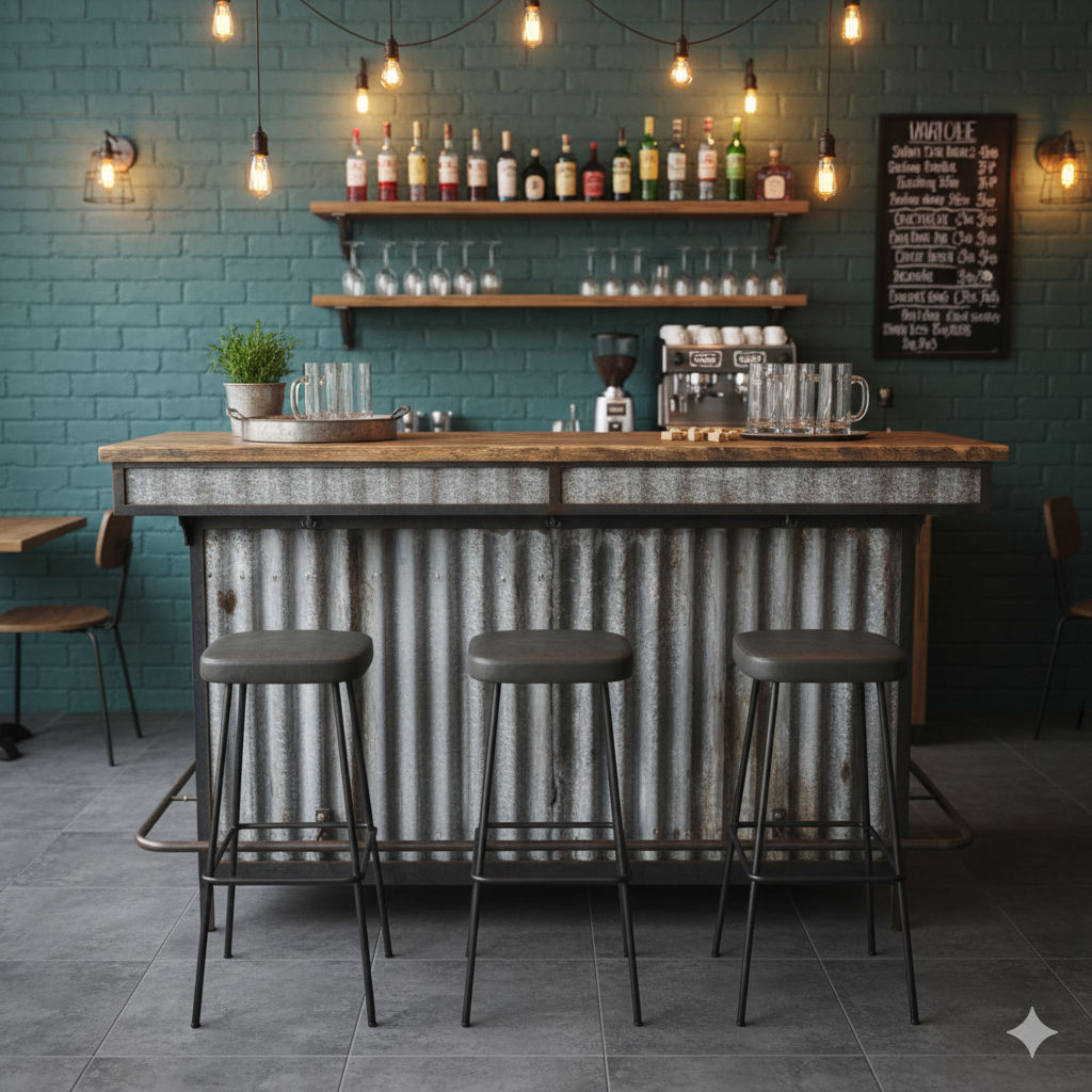 Der Tresen Modell Nino aus massiv Teakholz (recycelt) und Wellblech besticht durch seine aufwendige Verarbeitung und der einzigartigen Ausstrahlung. Die Kombination von industrieller Optik und moderner Funktionalität ist für alle gastronomischen Einrichtungen sowie vielen weiteren Einsatzgebieten geeignet. Der Tresen wird komplett fertig montiert geliefert und ist somit sofort einsatzbereit.