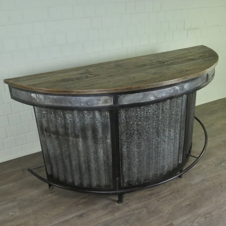 Der Tresen Modell Nino aus massiv Teakholz (recycelt) und Wellblech besticht durch seine aufwendige Verarbeitung und der einzigartigen Ausstrahlung. Die Kombination von industrieller Optik und moderner Funktionalität ist für alle gastronomischen Einrichtungen sowie vielen weiteren Einsatzgebieten geeignet. Der Tresen wird komplett fertig montiert geliefert und ist somit sofort einsatzbereit.