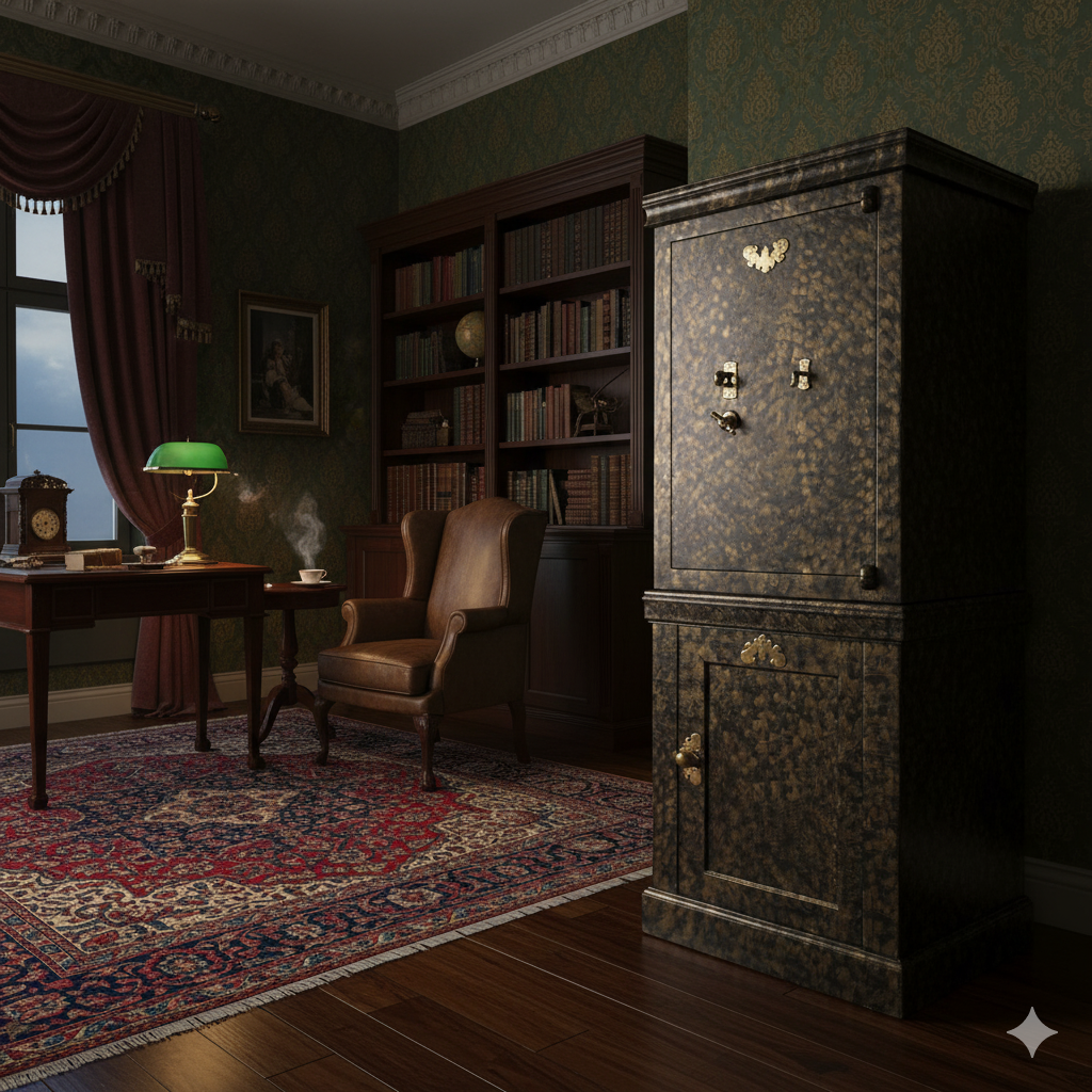 Aufwendig gestalteter Gründerzeit Tresor von ca. 1880. Der mit Unterschrank aus massiv Holz hergestellte Panzerschrank befindet sich in einem sehr guten Zustand und weist nur minimale Gebrauchsspuren auf. Der Unterschrank ist etwas wurmstichig was aber inzwischen entsprechend behandelt wurde. Zerlegbar (2-teilig). Gewicht ca. 350 Kilogramm. Maße: Breite 0,67 m Höhe 1,71 m Tiefe 0,55 m … Weiterlesen