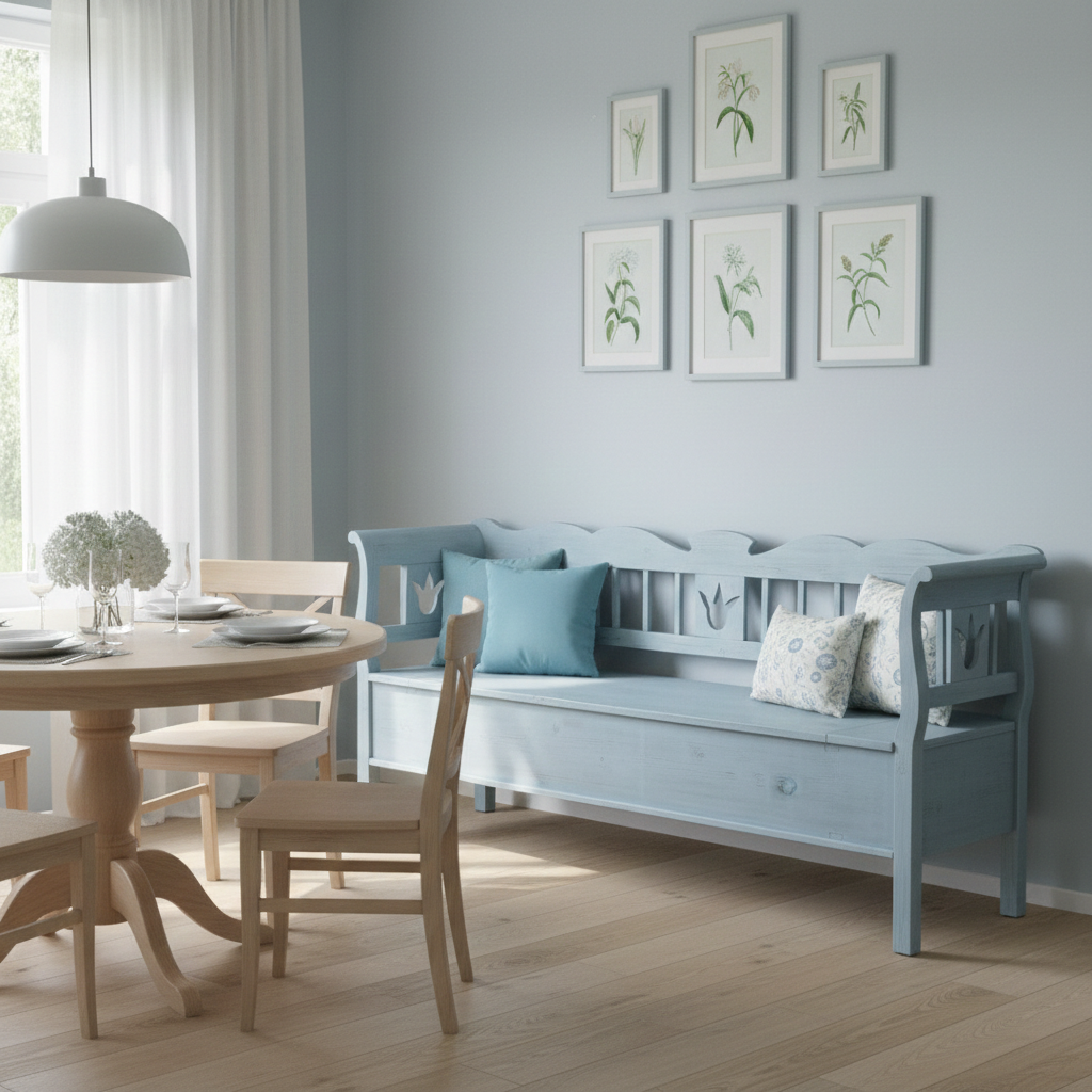 Truhenbank Küchenbank Hellblau 2,07 m Kiefer